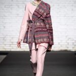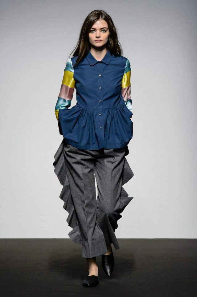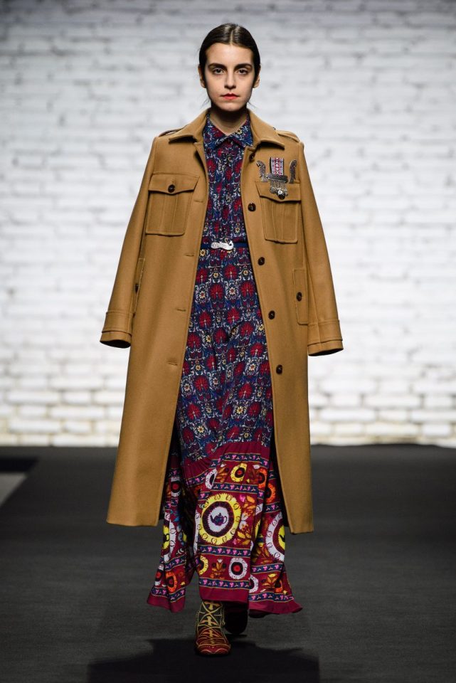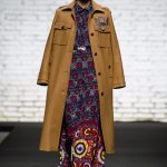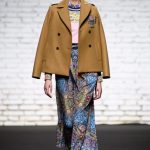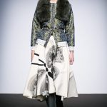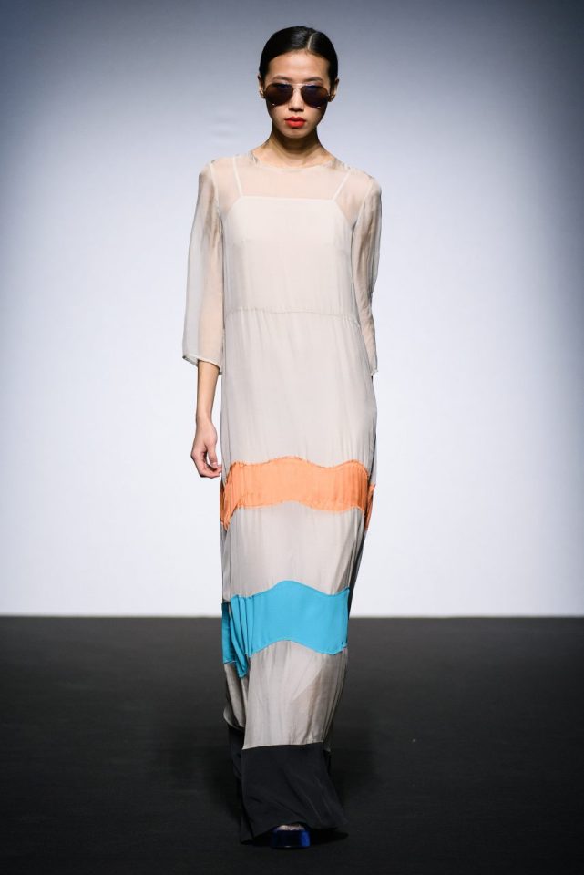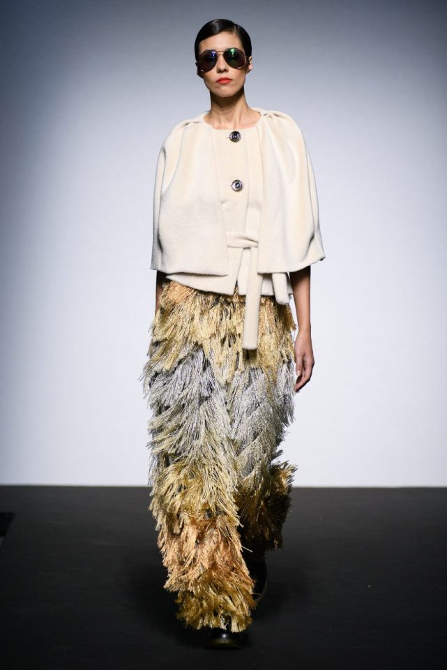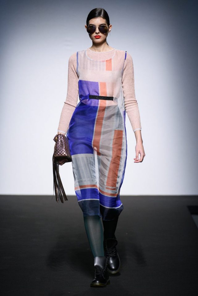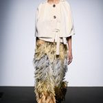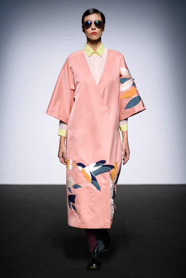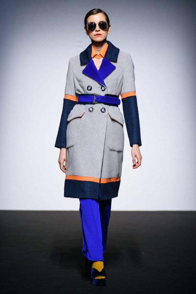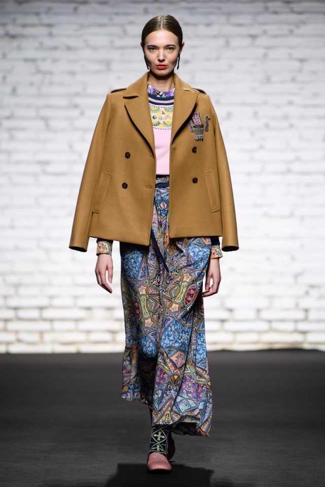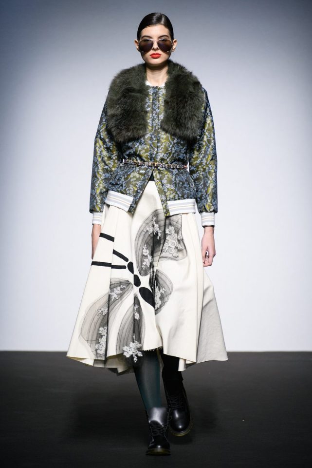 In passerella tailleur strutturati con giacche a due bottoni hanno lasciato il passo a gonne a corolla e a tulipano; cappottini doppiopetto si sono alternati a giacche e cappe dall’allure moderno e giocoso, abiti dalle linee fluide hanno accompagnato delicatamente i corpi delle giovani modelle. Il brand coniuga la tradizione sartoriale italiana con la cultura asiatica che ben si esprime nella giacca a caviglia dal taglio a kimono. Corposi e allegri i colori: un tonico verde tiffany, arancio, bordeaux, ottanio, cipria e nero ed energetiche le fantasie, il tutto, a creare una sintesi allegra e ottimista della visione della designer sul mondo femminile.