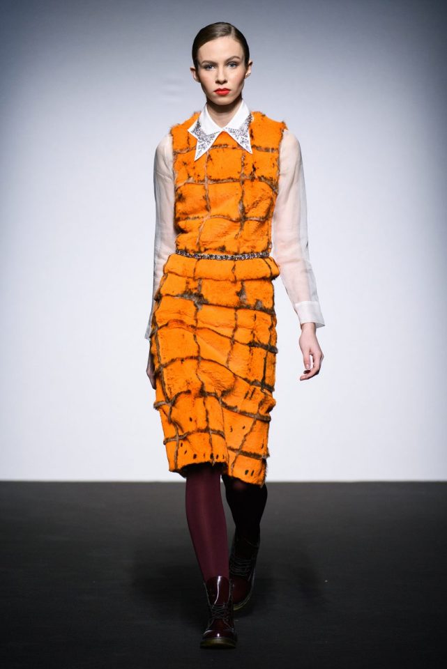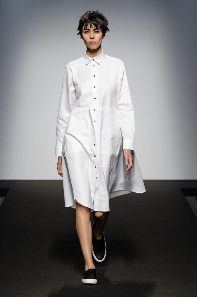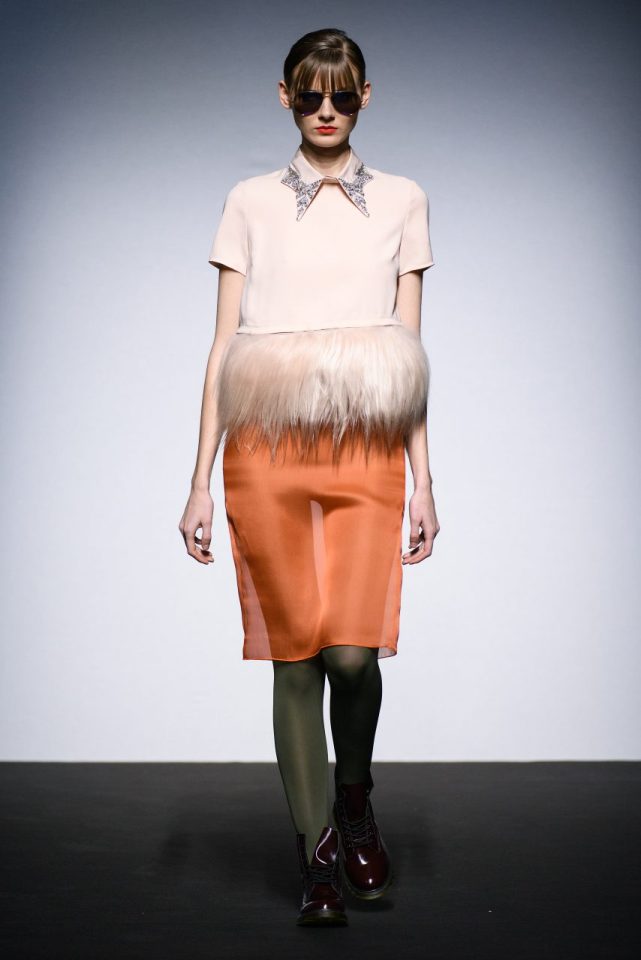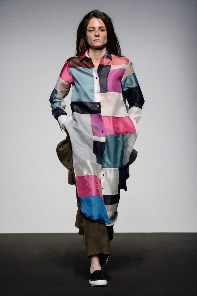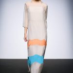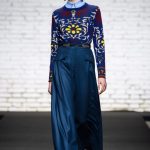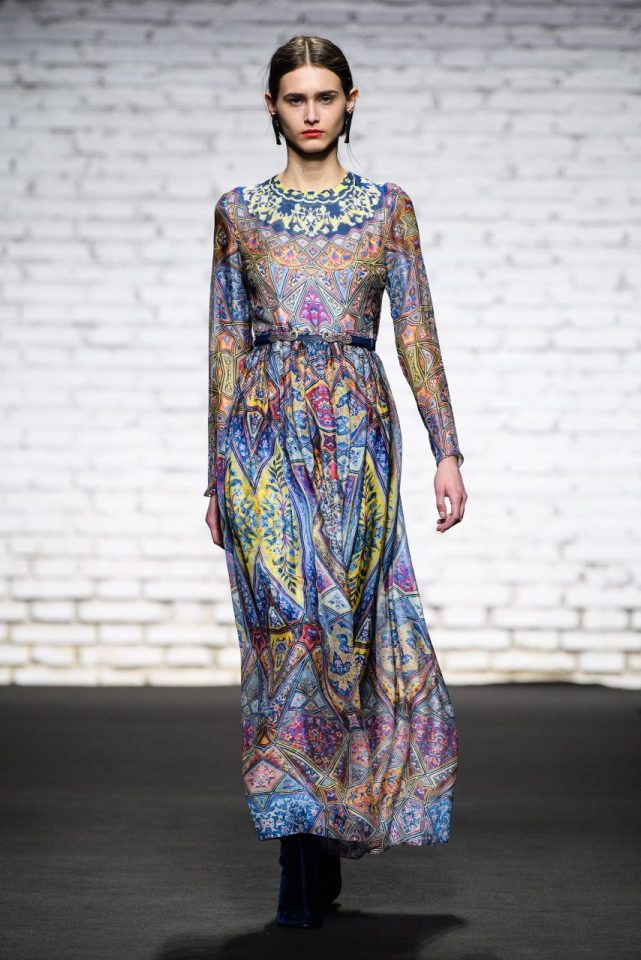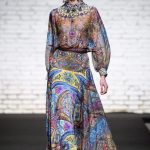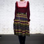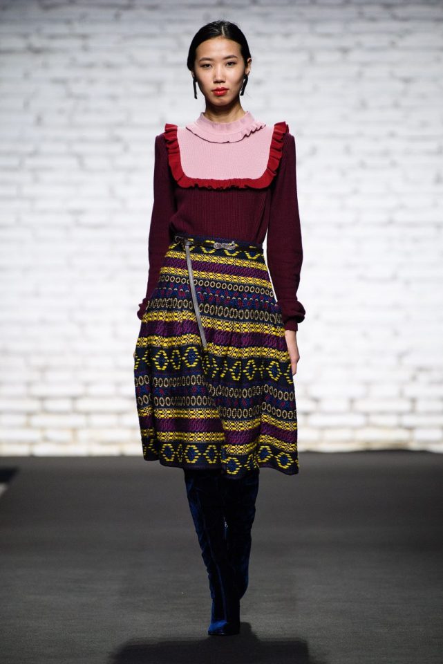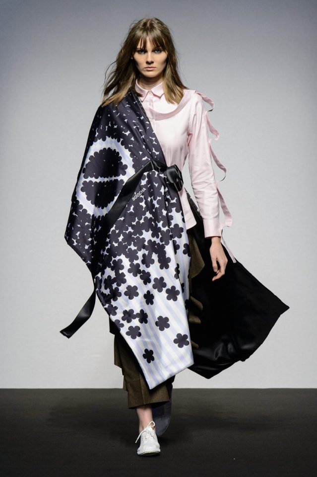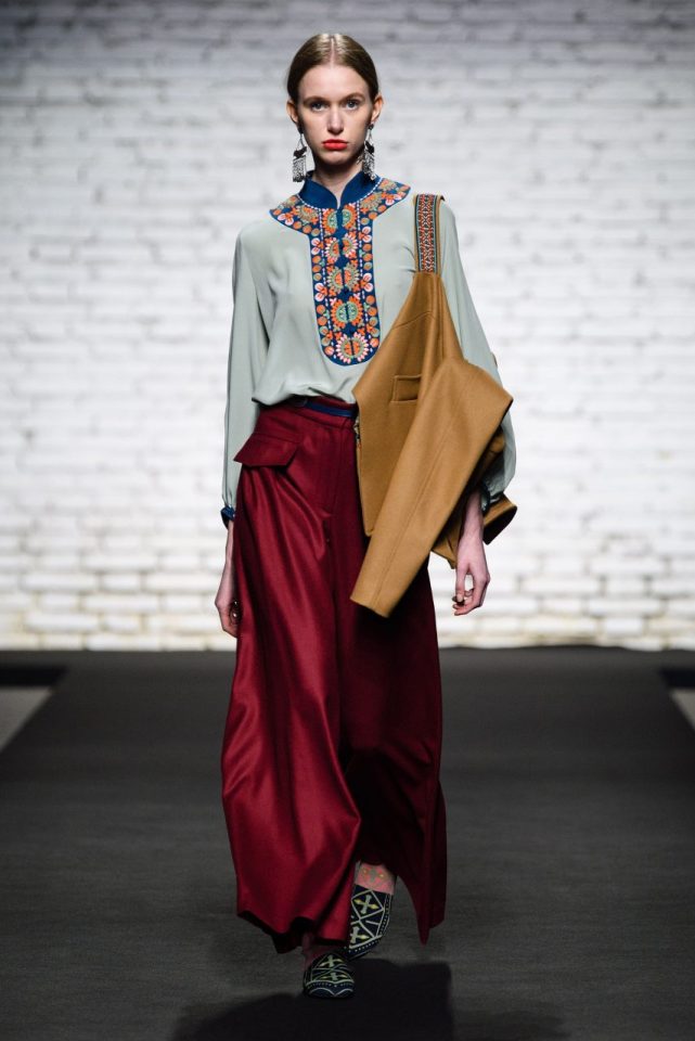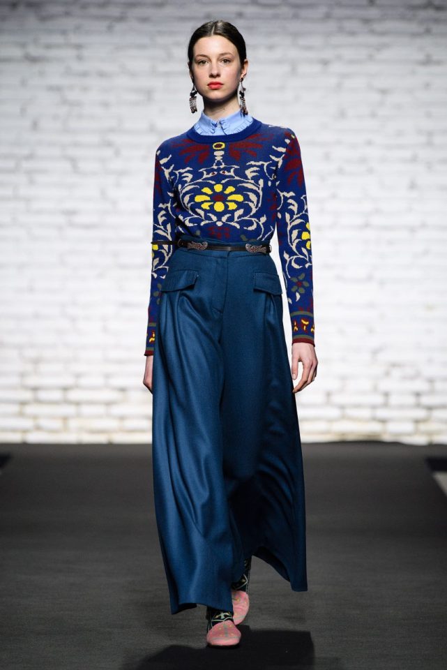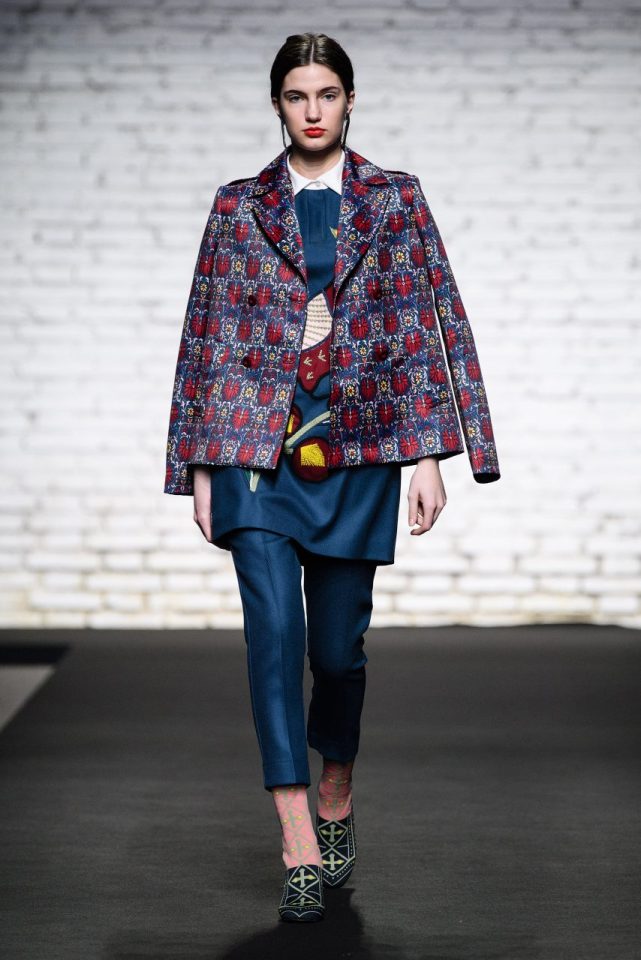 In passerella tailleur strutturati con giacche a due bottoni hanno lasciato il passo a gonne a corolla e a tulipano; cappottini doppiopetto si sono alternati a giacche e cappe dall’allure moderno e giocoso, abiti dalle linee fluide hanno accompagnato delicatamente i corpi delle giovani modelle. Il brand coniuga la tradizione sartoriale italiana con la cultura asiatica che ben si esprime nella giacca a caviglia dal taglio a kimono. Corposi e allegri i colori: un tonico verde tiffany, arancio, bordeaux, ottanio, cipria e nero ed energetiche le fantasie, il tutto, a creare una sintesi allegra e ottimista della visione della designer sul mondo femminile.