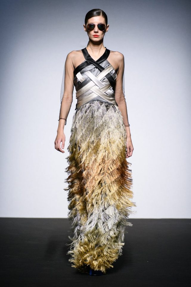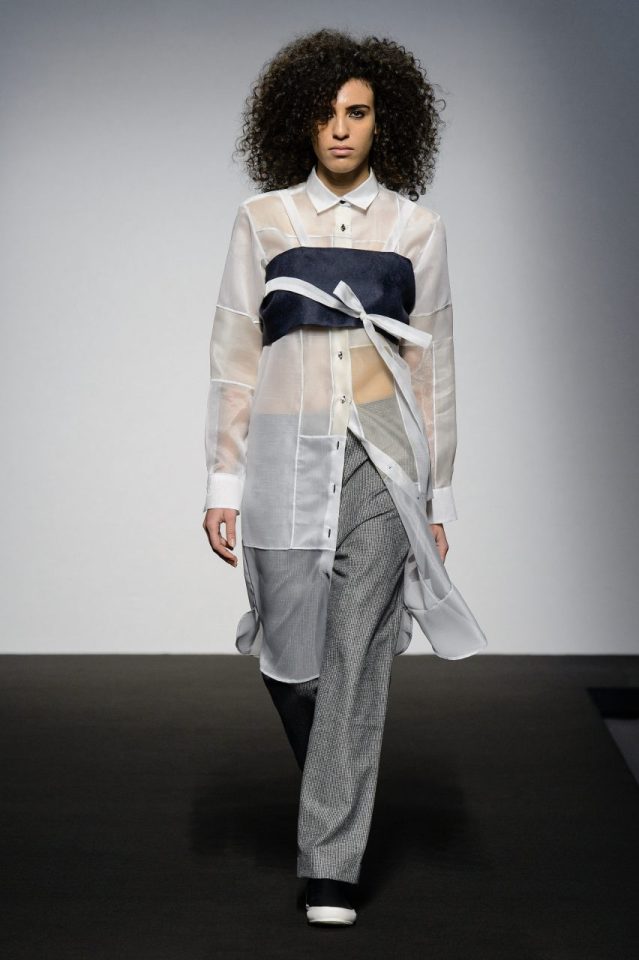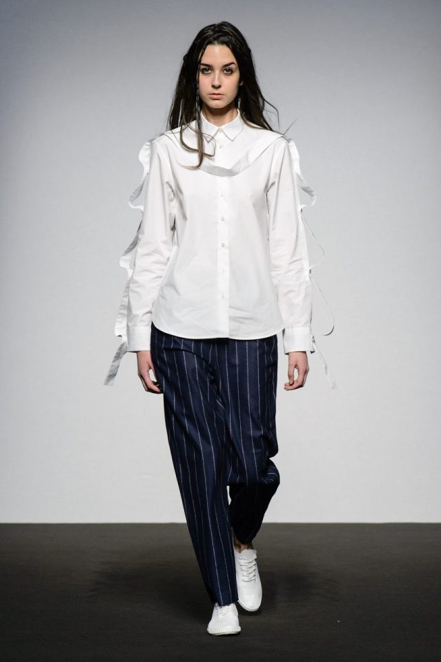 La collezione, intitolata “Revoluzionary Road” rappresenta una sintesi interpretata dalla giovane designer delle 19 riforme sociali introdotte nel 1963 dallo Scià Mohammad Reza Pahlavi. Tra le riforme della Rivoluzione Bianca, alcune furono rivolte a migliorare la condizione sociale ed economica della donna: fu introdotto per esempio il diritto di voto e un sostegno alla maternità. Proprio da questo momento storico propositivo e di rinascita la giovane designer prende spunto per la nuova collezione. Hanno sfilato sulla passerella romana, in chiave rivisitata, capi tradizionali indossati dai contadini iraniani, giacche rubate al guardaroba maschile e una proposta knitwear, caratterizzata da raffinatissime lavorazioni a maglia e progettata con diversi punti, mescolati insieme come fossero un tessuto lavorato a maglia.