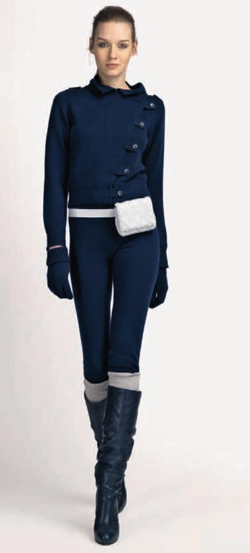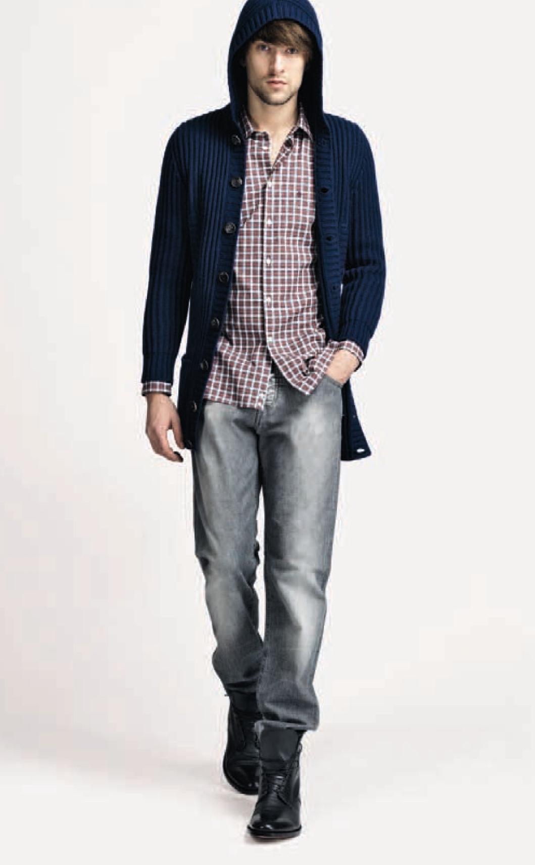 Altri capi di ispirazione sport sono il classico giubbotto di denim che viene ancora una volta declinato in maglia calata di cashmere; oppure le maglie Aran a coste larghe e a collo alto che si ispirano a quelle tipiche dei pescatori scozzesi. Pratiche felpe con cappuccio e piumini, con interno/esterno con rombi o a tinta unita sono indossate sotto a classici montgomery, realizzati anche in versioni più corte.