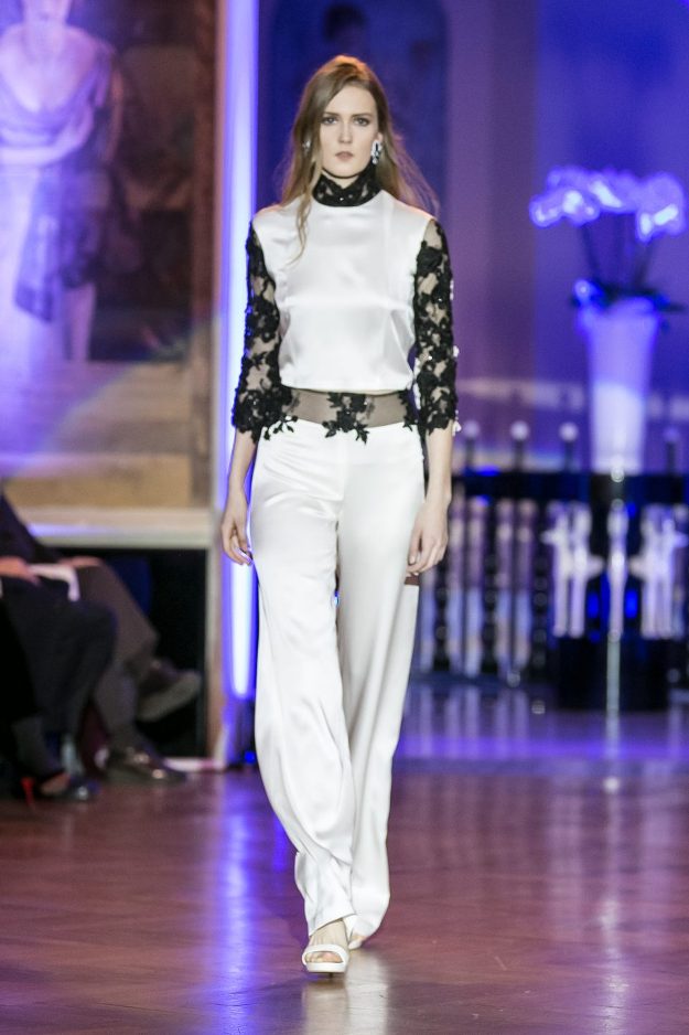 Aline Oliveira definisce la sua collezione come Inspirações romanas, ispirazioni romane; come a significare che Roma, con la sua arte, la bellezza dei suoi monumenti, la sua atmosfera culturale ha segnato la sua creatività. Sceglie quattro colori complementari per la sua tavolozza: bianco, nero, grigio e blu. Come per Asia Neri, anche per la stilista brasiliana va sottolineata la capacità di dar vita ad un chiaro prodotto alta amoda Made in Italy, caratterizzato da un forte impianto sartoriale e da dettagli di artigianalità che impreziosiscono l’abito; a ciò aggiunge una più marcata sensualità –eredità del suo Paese di origine- rispetto al rigore geometrica trecentesca di Asia Neri.