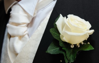 Ci vuole infine una raffinata bottoniera, un bel fiore bianco all’occhiello: garofano, gardenia, camelia, rosa o mazzolino di mughetti sono i più eleganti.