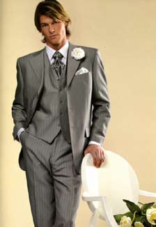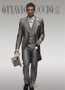 Realizzato sempre in lana, quest’abito è composto da una giacca tinta unita nelle sfumature del grigio (dal fumo di Londra al ferro) allacciata da un solo bottone e con code di rondine arrotondate che sfiorano quasi il polpaccio, dall’immancabile gilet di panno -color grigio perla- a cinque bottoni e da pantaloni diritti senza risvolto con tessuto percorso da microrighe. In questo caso è di rigore la camicia bianca, con colletto rigido ad angoli piegati all’insù e polsini doppi fermati da importanti gemelli. Completa il look un plastron di seta tinta unita, fissato al centro da una minispilla gioiello fermacravatta. Infine per i perfezionisti un cilindro e dei guanti grigi, che non vanno indossati, ma semplicemente tenuti in mano.