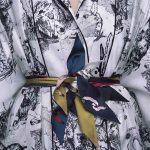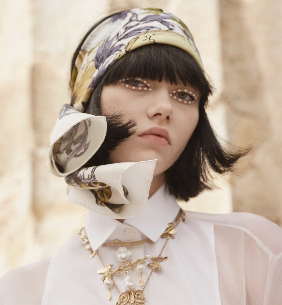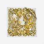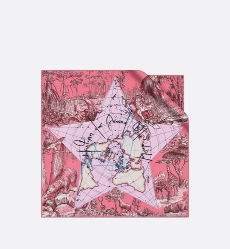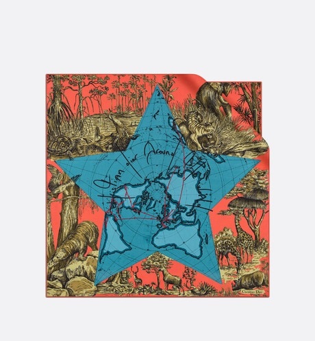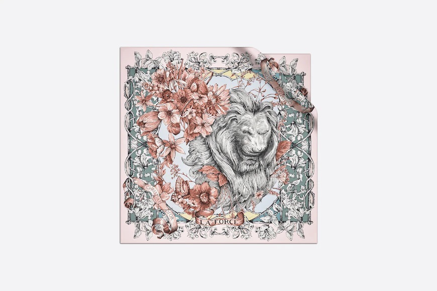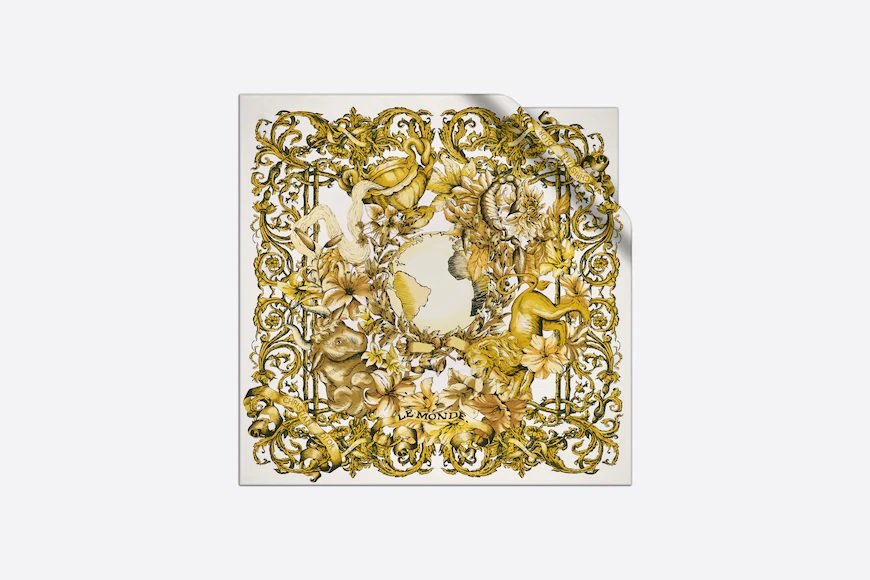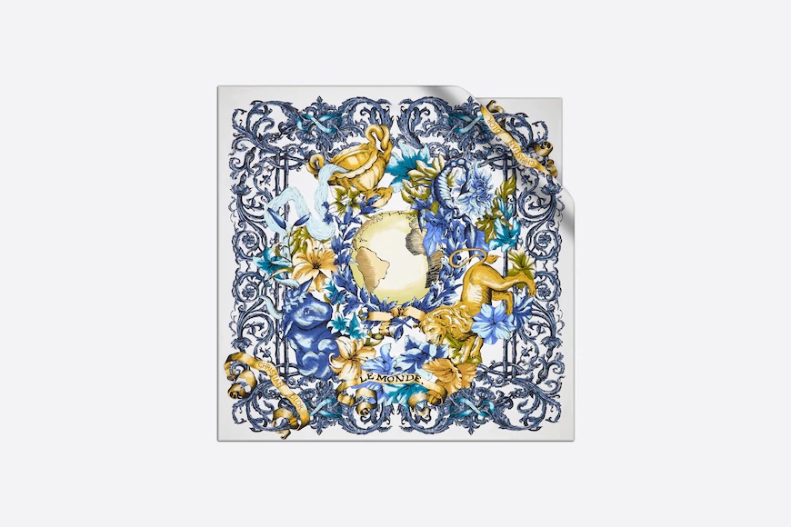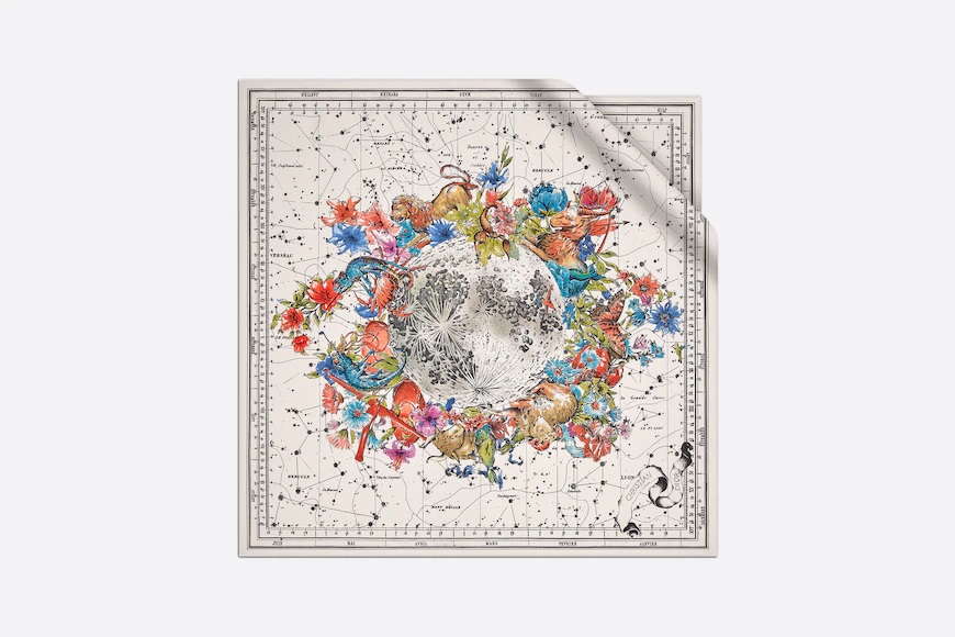 Per questa sapiente riaffermazione di un capo d’autore – sì perché il foulard è anche una “tela” d’arte – dalle mille sfaccettature, Maria Grazia Chiuri si è affidata agli artifici di Pietro Ruffo, artista italiano che ha reso omaggio ad alcuni dei motivi più iconici della Maison come il Toile de Jouy e la stella portafortuna di Monsieur Dior.