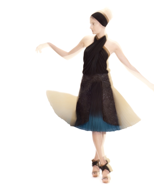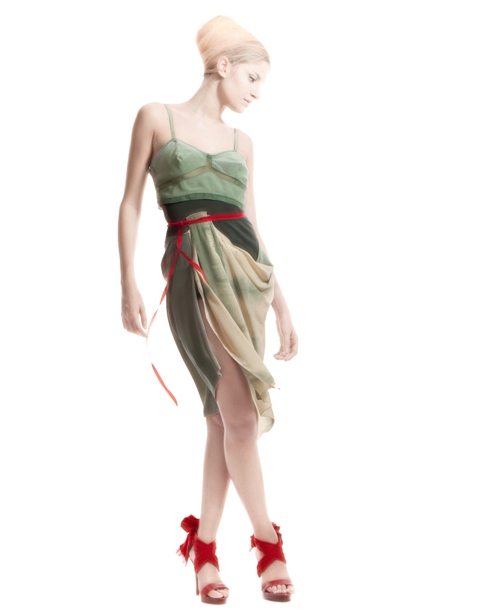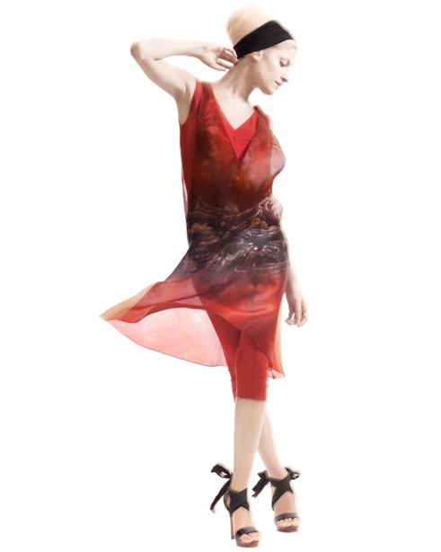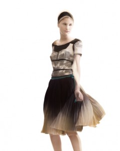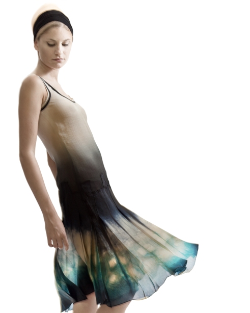Andiamo al marchio Bragia. Giovanissimo; è nato solo nel settembre 2009, ma la filosofia che lo caratterizza è chiara e decisa, rispecchia le idee precise che in fatto di moda hanno i suoi promotori. Linee semplici esaltate da grande attenzione ai tessuti, a loro volta arricchiti da giochi di colori e sfumature. Fonte di ispirazione è la natura: le sue forme morbide, sinuose e i colori dai toni vividi. Destano grande interesse le stampe tie and dye -si tratta di una tecnica tinteggiatura attraverso la creazione di nodi sui tessuti- per la loro peculiarità di realizzazione e la raffinatezza di abbinamenti cromatici che si possono ottenere. “Le creazioni di Bragia, realizzate interamente Made in Italy –ci tengono a sottolinearlo-, sono inspirate ad un nuovo concetto di moda che sa unire capi unici, tecniche sperimentali di tintura, creazione di pattern e materie, studio di forme dalla indiscussa qualità manifatturiera e sartoriale. Le soluzioni creative ideate per ogni collezione vogliono rendere un capo originale e al contempo sofisticato; i tessuti elaborati, strapazzati, tagliuzzati, tinti e ritinti creano uno stile esclusivo”