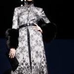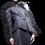 L’arte del couturier si ammira ancora nelle sovrapposizioni di pizzo o tulle negli abiti e nei soprabiti, nei ricami, nell’uso sapiente e moderato delle piume che completano il ricamo e danno leggerezza all’insieme.