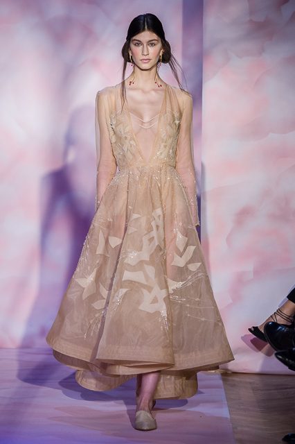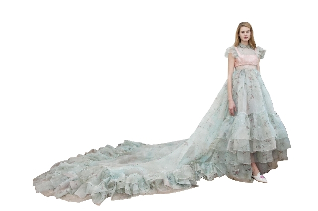 La bellissima collezione primavera estate portata ad AltaRoma da Guillermo Mariotto, avrebbe meritato una diversa location, più spaziosa, per permettere al pubblico di poterli ammirare con agio. Ad ogni buon conto è risultata suggestiva e a tono con il “sogno” che ha ispirato il couturier di maison Gattinoni: il “Sogno di una notte di mezza estate”, ambientato in un giardino contemporaneo dove campeggia l’albero scultura dell’artista Guido Borghi, centro del cerchio nel quali si muovono le giovani interpreti del ritorno alla “casa” di AltaRoma di Stefano Dominella.