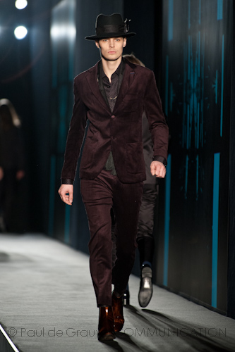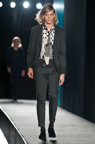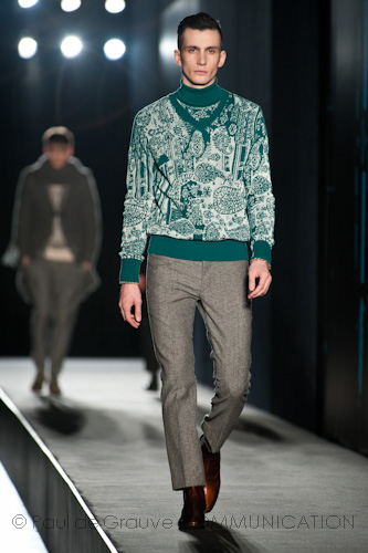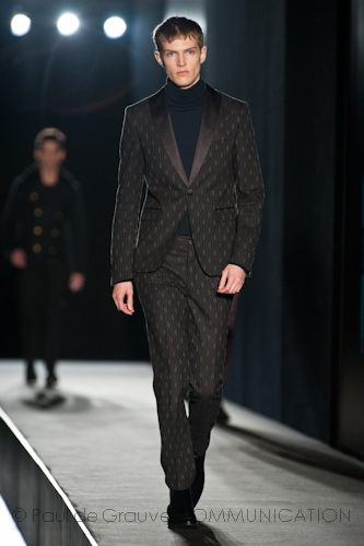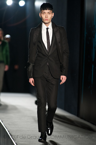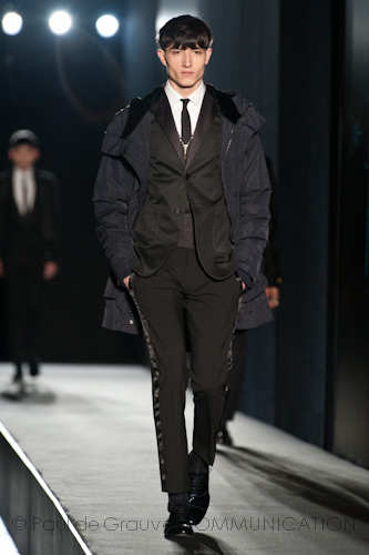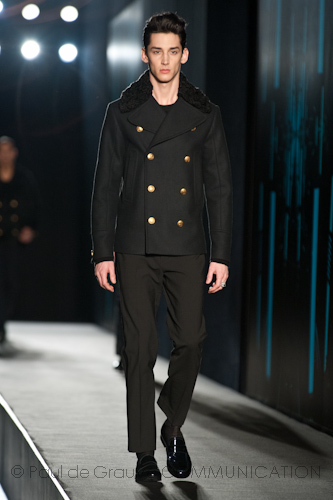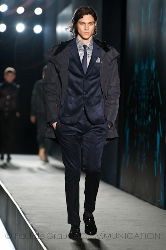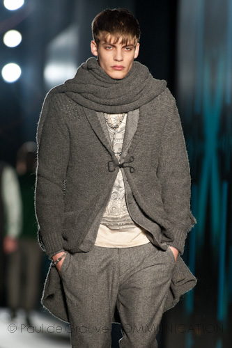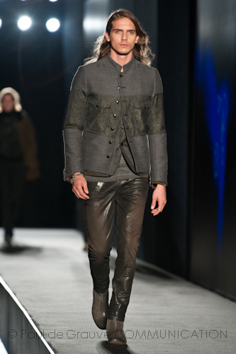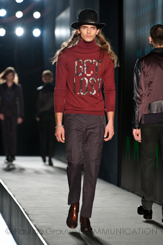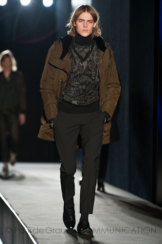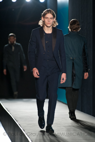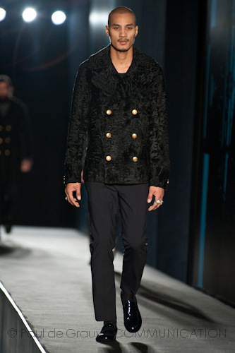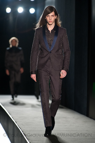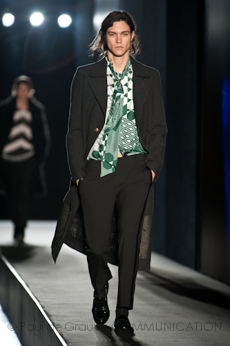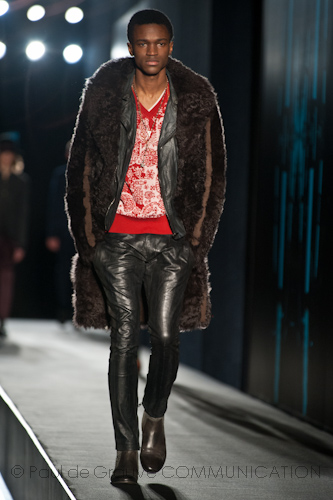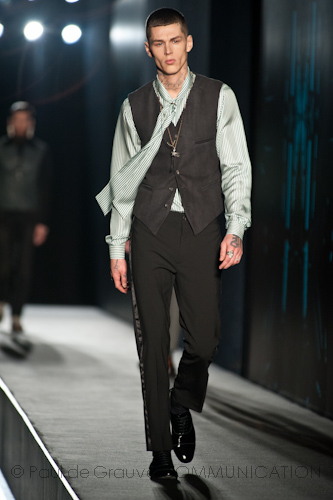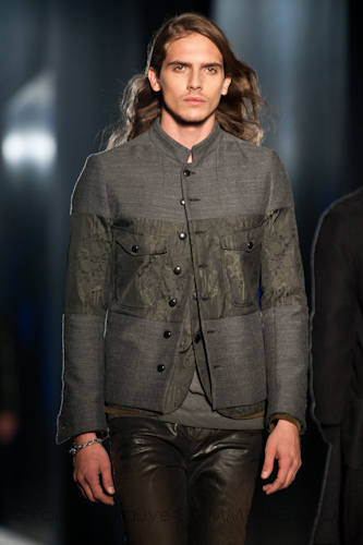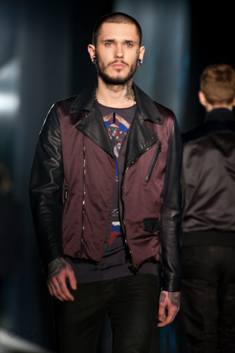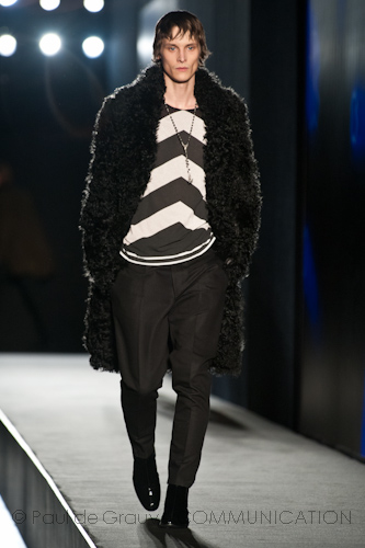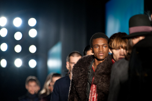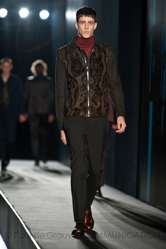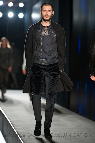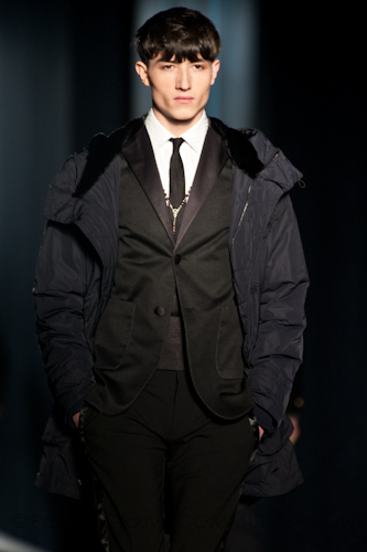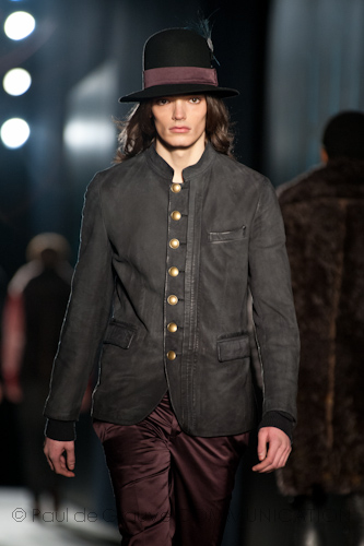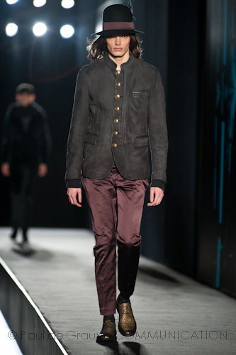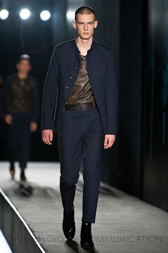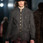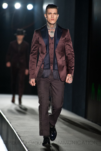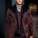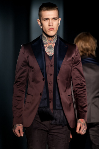 L’altro trend è invece più inquietante. Alla sfilata di Diesel Black Gold, semi nascosti sotto la T-shirt o visibile sul petto e sul collo, i modelli esibivano estesi tatuaggi. Se spendiamo due parole sull’ antropologia del tatuaggio, sul suo significato nella società contemporanea – non ci interessa approfondire il significato del tatuaggio tra i popoli primitivi, o antichi come i Fenici o i Romani ecc, e neppure nelle fasce più abiette della società, prostitute e galeotti, o l’usanza dei marinai di tatuarsi-, sapremo quale è il contenuto “semantico” della collezione di Renzo Rosso.