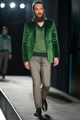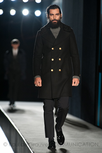 Chiamare a sfilare modelli con tanto di barba era importante per sottolineare una certa ambientazione dello spettacolo o per accentuare certe suggestioni contenute nelle scelte stilistiche. Canali per la sua collezione elegante e formale, ha scelto uomini che potessero interpretare i suoi richiami a San Pietroburgo: volti slavi con belle barbe stile ottocentesco. Ma l’elenco delle sfilate con barba – più o meno lunga e curata e dal taglio diverso- è lungo: Zegna, Dolce&Gabbana,Missoni, Armani,Frankie Morello ecc. Tutte, eccetto Frankie Morello come sempre ironico e scanzonato, presentano un uomo maturo –non per l’età ma per l’aplombe- , equilibrato, virile e rassicurante, elegante e sicuro