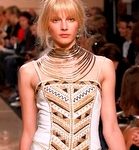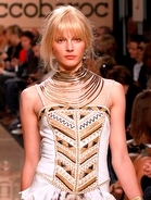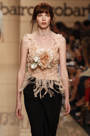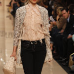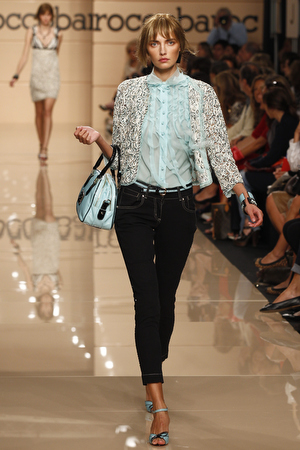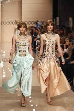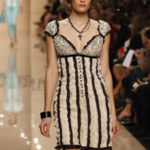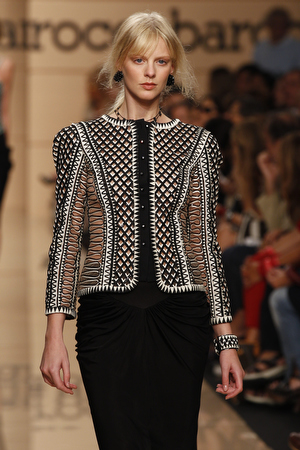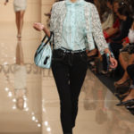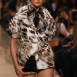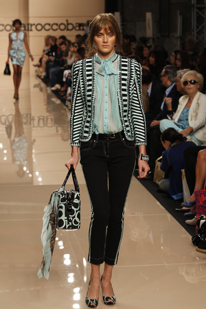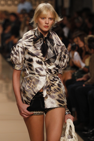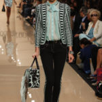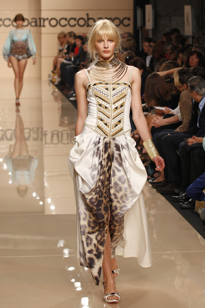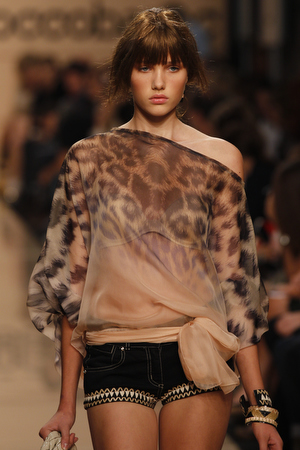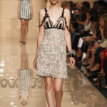 Torna in passerella la macro stampa animalier sulle camicie lunghe che fungono da copricostume, sulle gonne e sui mini abiti da giorno, realizzati in lino e seta. Mentre è un gioco di intrecci tra fili di seta e cotone, effetto hand made, il tessuto definito “chinet estivo”, utilizzato per le giacche e i cappottini da città. Hanno un gusto decisamente bon ton i paletot in bouclè laminato.