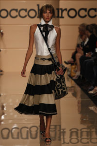 Roccobarocco ci trasporta nel cuore dell’Africa con una collezione ispirata ai colori del Senegal e della Costa d’Avorio: il pesca intenso degrada al rosa carne, l’acqua marina all’azzurro polvere, passando per il rosso deciso dei tramonti e il verde delle foreste. Gli accostamenti cromatici dal sapore tribale cedono poi il passo ai contrasti black and white per la mise più urbana.