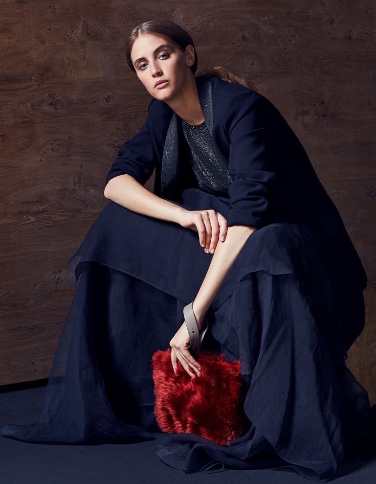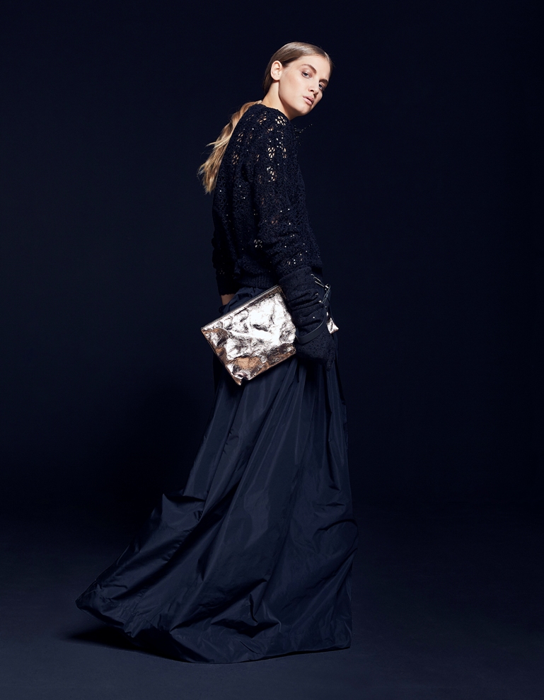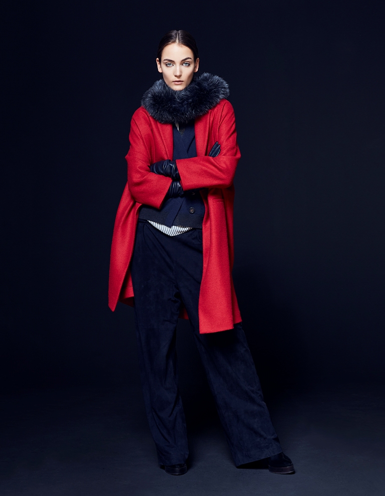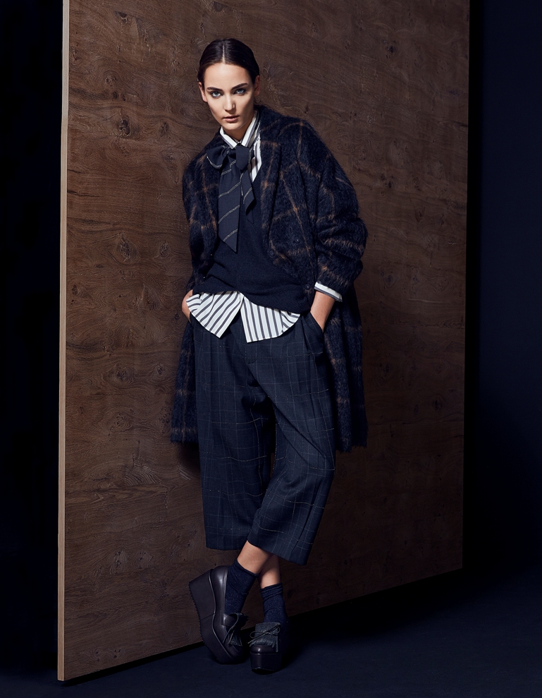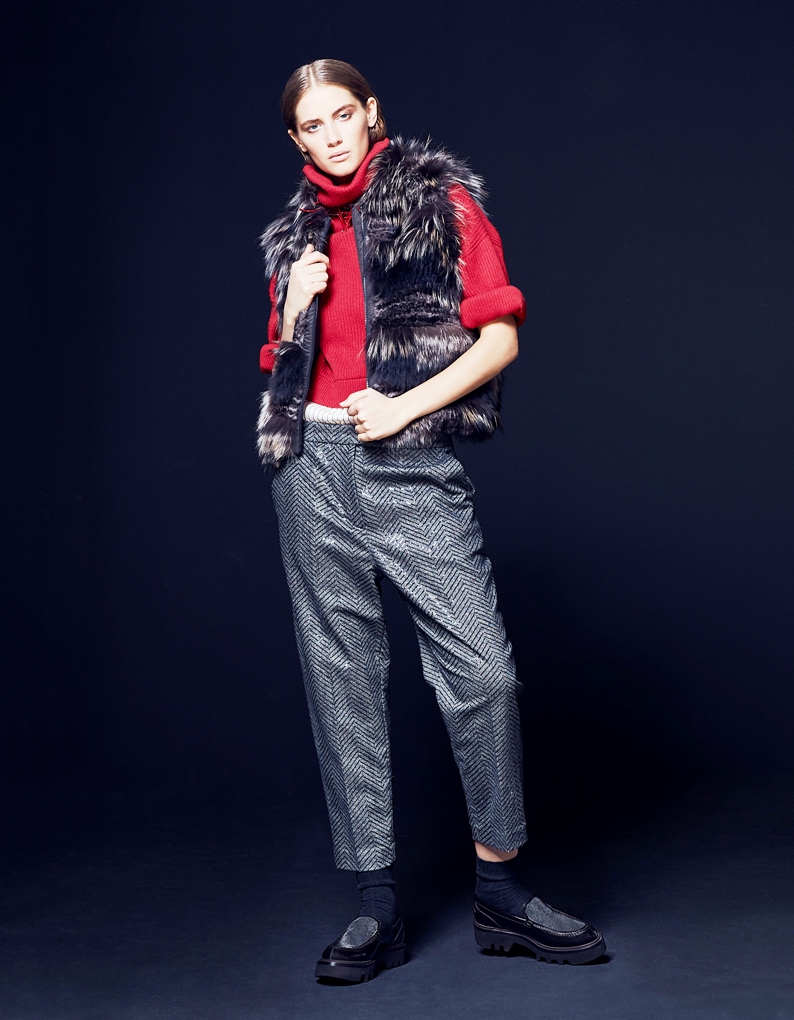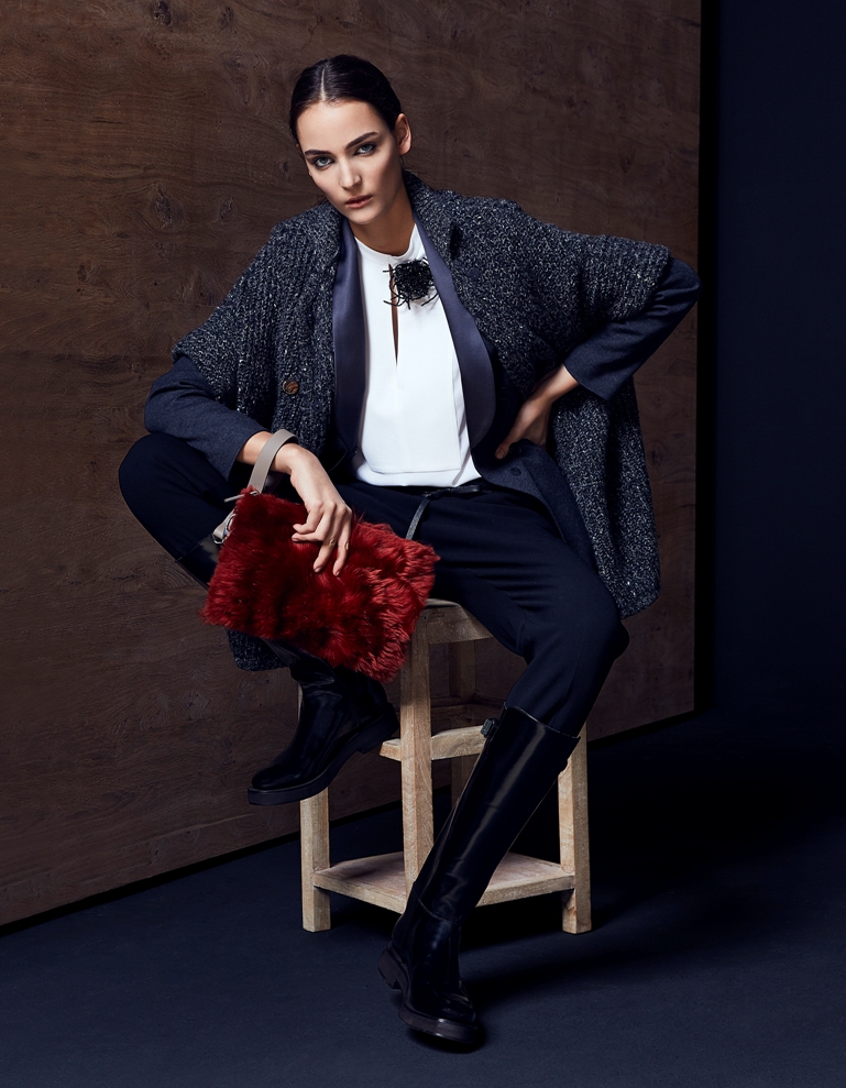 Il gusto British, rinfrescato e reso più contemporaneo, “attraversa” giacche, mantelle, cappotti. Le rigorose gessature si adornano così di monili baluginanti e le discrete paillettes danno luce alla pseudo-austerità delle flanelle e dei feltri.