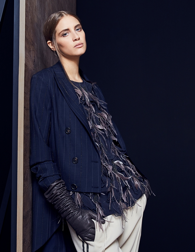 Tonalità come “Seta, Miglio, Tortora, Salgemma, Perla, Marmo…..” percorrono la vasta e poliedrica collezione, dalle maglie ai capispalla, dalle gonne agli accessori, dalle pellicce ai raffinatissimi pezzi per la casa.