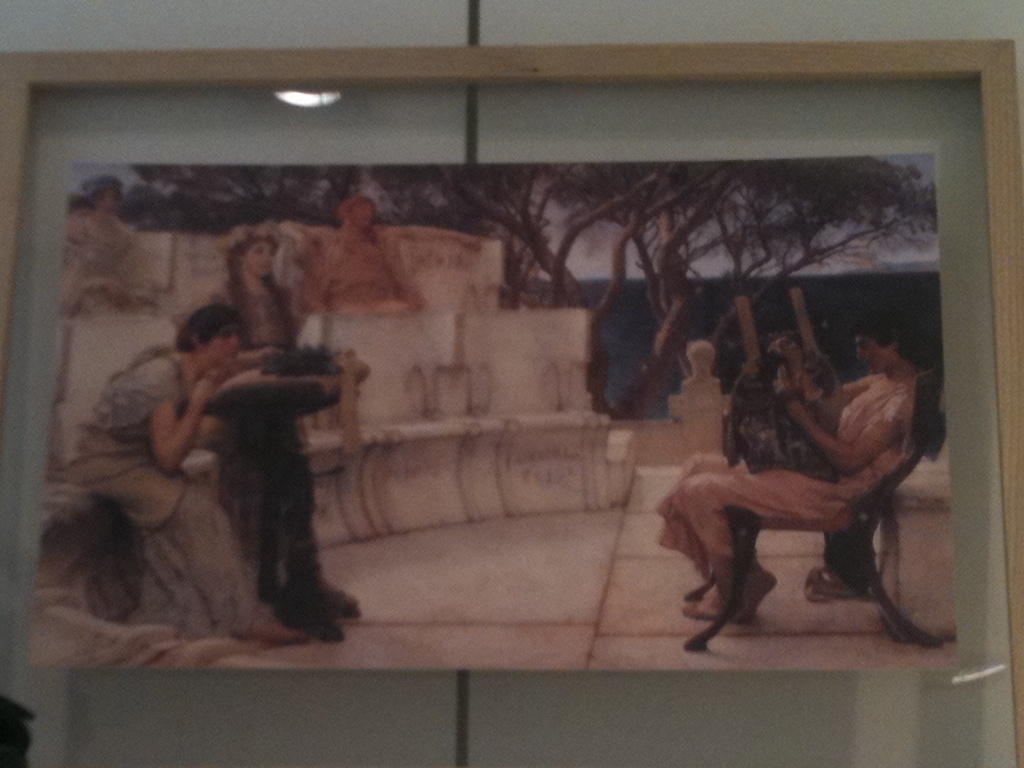 Rappresentazioni di momenti di spensieratezza di celebrità o di icone senzatempo -una sorridente Jackie che osserva il mare con il suo Onassis, un giovane Einstein che si diletta con il violino, un concentratissimo Picasso che insegna l’arte del disegno a un bambino, un gruppo di eleganti signori che sfogliano una rivista- o riproduzioni di personaggi dell’antichità come Virgilio con le sue Bucoliche o Lucrezio col suo De Rerum Natura e di scene rinascimentali che inneggiano agli aspetti ludici delle attività legate all’arte a confutazione dell’idea medioevale dell’ozio come padre dei vizi…….