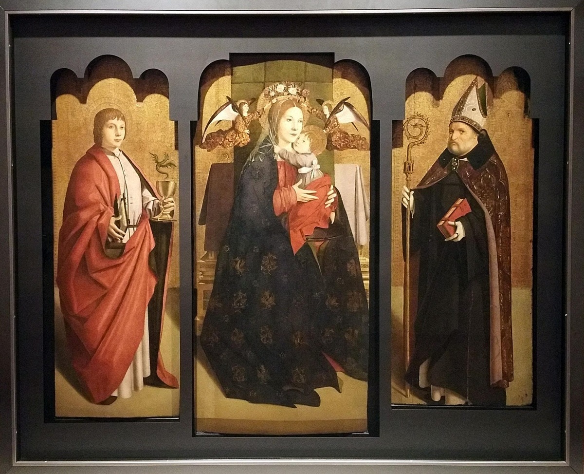 Su Antonello comunque fu anche Piero della Francesca ad incidere sensibilmente. Nel Polittico di San Gregorio (1473) le citazioni sono evidentissime nell’utilizzo di certi archetipi formali, ma soprattutto nell’impiego del fondo d’oro come di una superficie-specchio che determina i volumi di luce esatti in cui si pongono i personaggi, con la differenza che Antonello adotta la luce teorizzata da Piero come naturale, oltre che come divina. Così essa sembra penetrare e far vibrare l’epidermide dei colori, sciogliendo il rigore dei tratti.