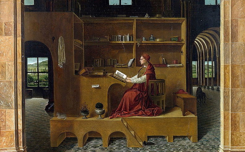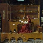 Tra i capolavori più celebri dell’artista messinese in mostra a Milano vi è il “San Girolamo nello studio”, la cui impostazione invita l’osservatore a spiare, attraverso la finestra aperta, il Santo assorto nella lettura dei testi sacri, mentre solo il leone pare accorgersi del mondo esterno. Particolari come gli oggetti sugli scaffali, la piastrelle del pavimento, gli uccelli sul davanzale e la qualità della luce richiamano il realismo dei pittori delle Fiandre e soprattutto Van Eyck, di cui il Maestro siciliano dimostra di conoscere le tecniche (sebbene non esistano prove certe che egli abbia mai viaggiato all’estero). E’ assai verosimile che abbia acquisito i “segreti” direttamente dagli artisti fiamminghi operanti in Italia al suo tempo. Di sicuro si sa che egli nel 1475-76 soggiornò a Venezia, dove la sua tecnica innovativa esercitò una notevole influenza su Giovanni Bellini.