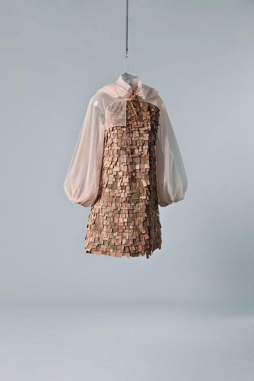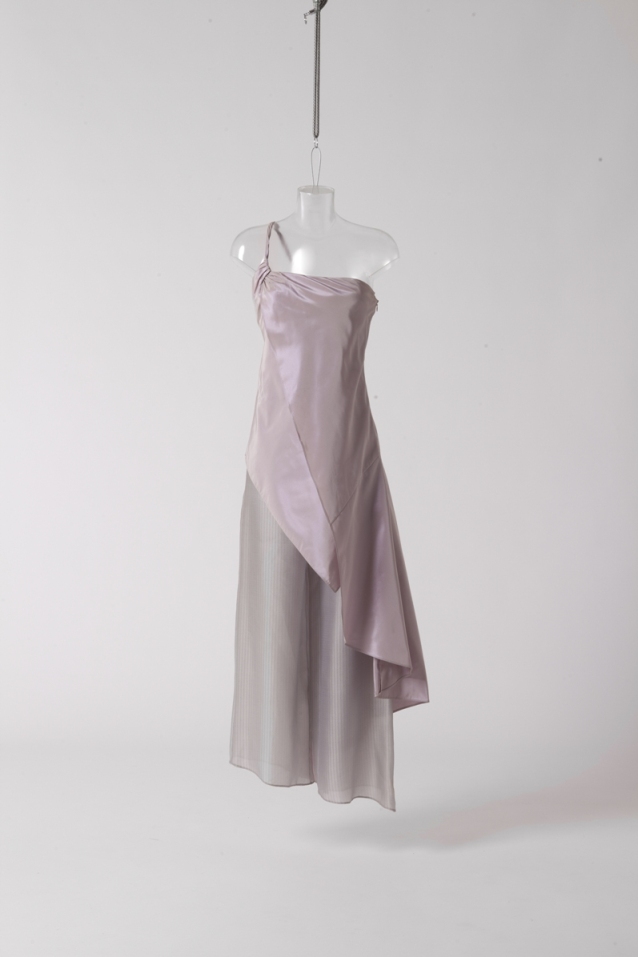 E così ecco un inconfondibile Armani, un abito sottoveste mono spalla dalla linea pulita con doppio strato di seta sulla gonna e drappeggio laterale, ecco la placida allure del maestro Antonio Marras con la sua sontuosa giacca kimono, ecc l’autorevole tunica di Issey Miyake, uno dei più bravi maestri in tema di plissé, ecco le giacche ispirate al movimento delle acque di Leonardo da Vinci di Maurizio Galante, ma anche i costumi da bagno di Laura Urbinati che ben si armonizzano con le altre splendide opere di stilisti di fama mondiale: Valentino, Martin Mariangela, Gianfranco Ferrè, Krizia, Adelinne André, Max Mara, Ermanno Scervino e molti altri.