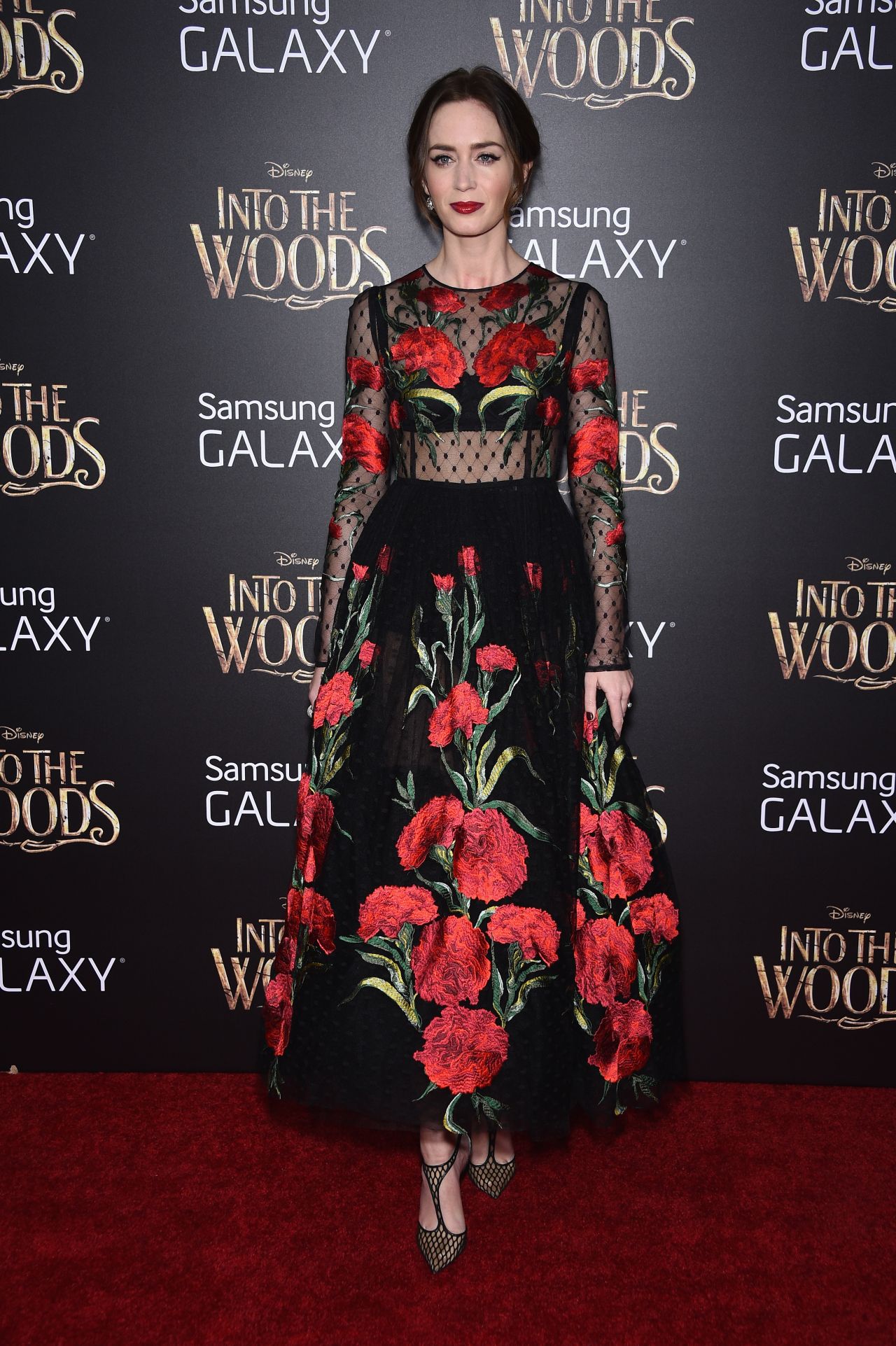 Curiosamente, durante la promozione del film le attrici protagoniste hanno scelto più di una volta abiti d’alta moda in linea con l’atmosfera del film. Alla premiere mondiale Emily Blunt ha sfoggiato un abito di tulle nero in point d’esprit di Dolce&Gabbana, della collezione primavera/estate 2015, interamente decorato con pregiati ricami rossi e verdi raffiguranti garofani, composto da una gonna a ruota lunga fino alla caviglia e da un corpetto trasparente aderente, accollato ed a maniche lunghe, con reggiseno di pizzo nello stesso colore in vista. Nonostante lo portasse con disinvoltura, avrebbe fatto mostra di una maggiore raffinatezza se anche il corpetto fosse stato doppiato come la gonna.
