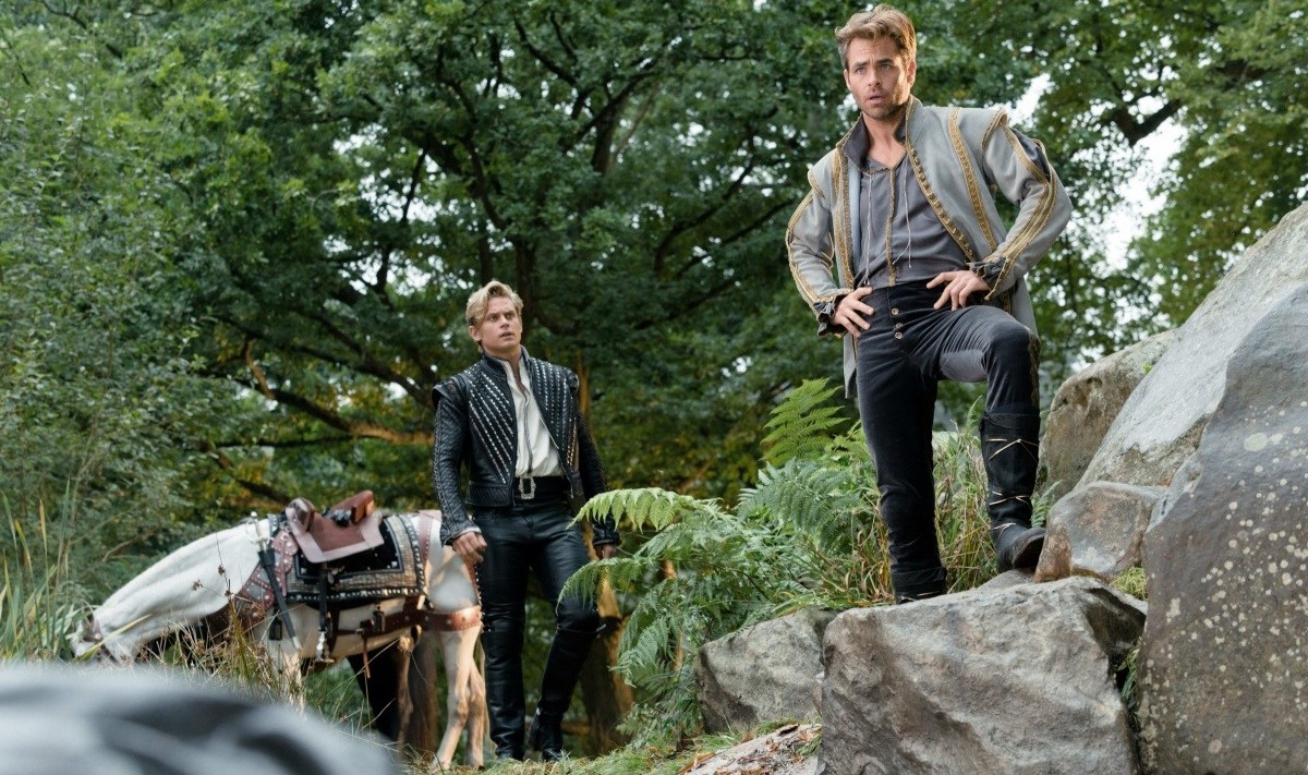 Anche suo fratello, il principe di Cenerentola (Chris Pine), sfoggia lo stesso completo, ma in colori e materiali differenti, per riprendere il costume della sua principessa: dai pantaloni aderenti blu notte alla camicia blu acciaio fino al farsetto blu chiaro, ciascuno dei suoi indumenti presenta profili e bottoni in color verde muschio, un richiamo alla foresta e in sintonia col vestito da ballo di Cenerentola realizzato con le foglie dell’albero della madre.