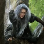 Fortunatamente, questo è l’unico mondo in netto contrasto con gli altri. Cruciale per la riuscita del film sono stati invece i due costumi della strega (Meryl Streep, candidata all’Oscar per questo ruolo), uno per quando è vecchia ed orribile e l’altro per quando ringiovanisce grazie alla pozione. Per il primo, lacero e consunto come lei stessa, sono state cucite strisce molto sottili di pelle nera su dello chiffon dello stesso colore per il rovescio ed in modo contorto, per dare la sensazione di un nodoso tronco d’albero, e gli orli sono stati pesantemente sfilacciati. La foresta è stata il punto di partenza per la costumista -tutti i personaggi vi entrano, vi si perdono ed alla fine in essa ritrovano se stessi-: la strega concretamente proviene da essa. Lavorando a stretto contatto con gli addetti del reparto tessile ha ottenuto di incorporare le texture degli alberi, le luci e le ombre del bosco nei pattern e sulle superfici dei tessuti e dei materiali; il risultato è stata una superficie contorta che contribuisce ad accentuare ulteriormente la deformità fisica e morale del personaggio, ma che esalta anche la capacità di muoversi della Streep che ha evitato alla Atwood tanti rompicapo, pochi accorgimenti sono stati sufficienti per permetterle una completa libertà di movimento dell’interprete.