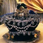 L’apoteosi dell’opulenza la ritroviamo proprio nell’idea di gran soirée delle coffe reali, tutte rivestite (anche l’interno) di velluti, broccati e passamanerie dalle tinte corpose e avvolgenti, belle da togliere il fiato.