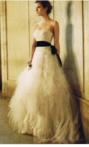 Si accosta all’altare eterea e impalpabile, come il sogno che si va a celebrare, la donna di Vera Wang.