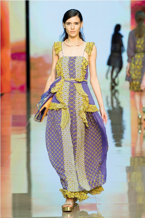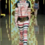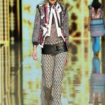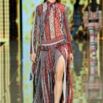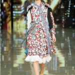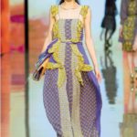 Niente di tutto ciò. A guardare in una unica schermata le foto della sfilata, la sensazione è di molta confusione. L’unico filo conduttore sembra essere: mescolare fantasie, sovrapporre, aggiungere, rendere il discorso dell’ abito complicato; ma ciò che è complicato non è bello, ci ha suggerito Antoni Gaudì.