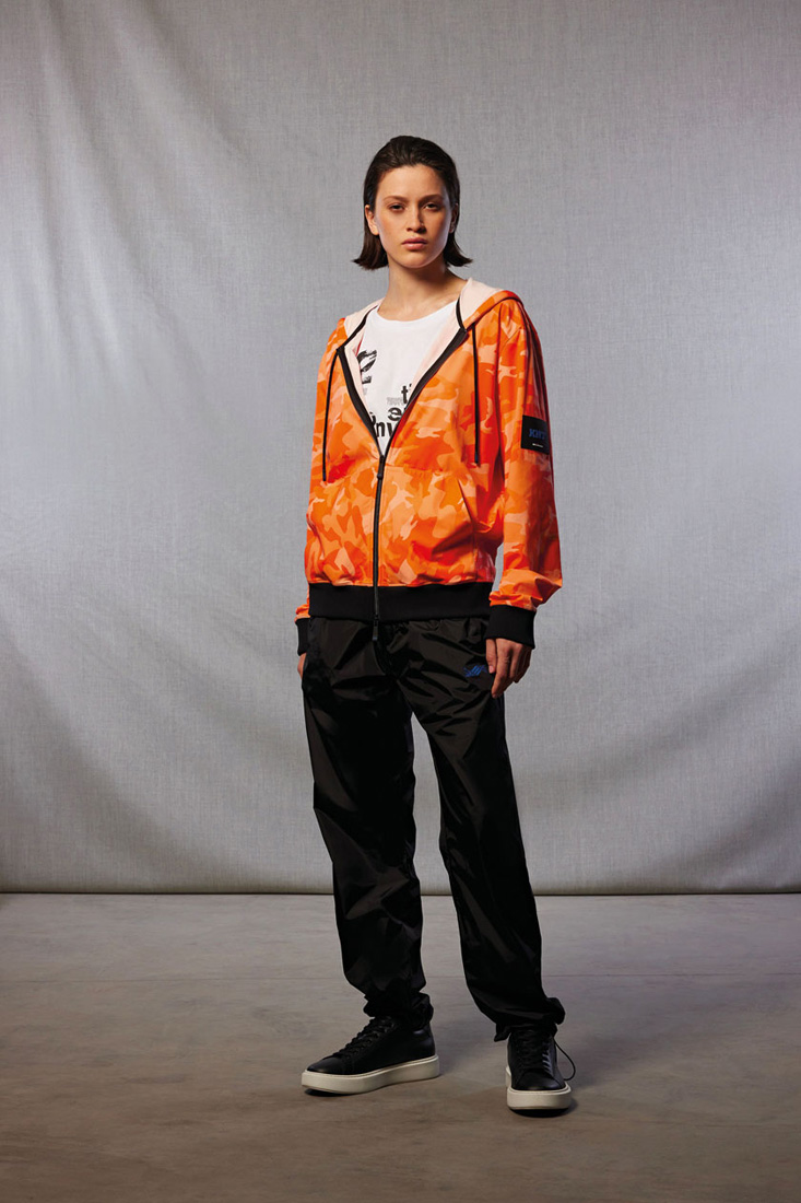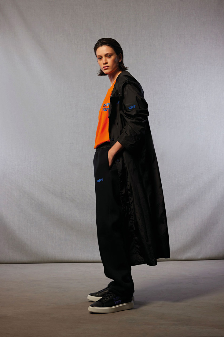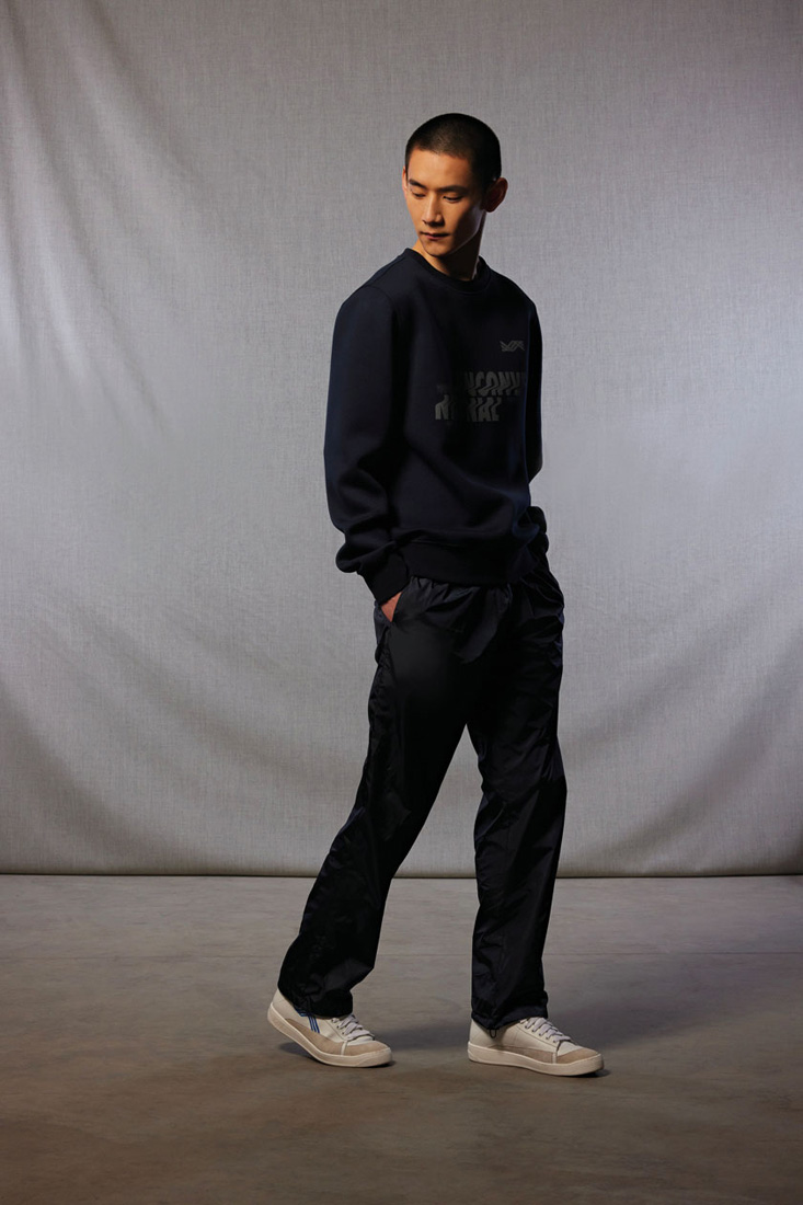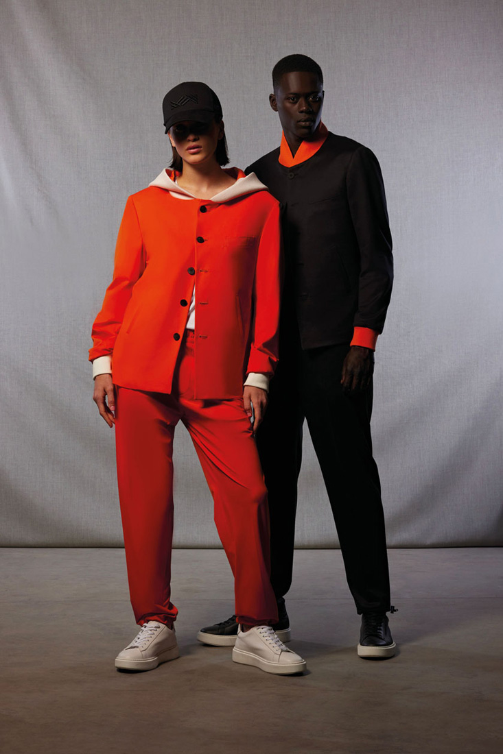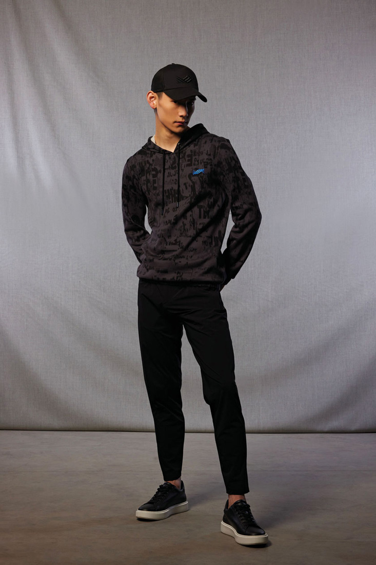Una collezione giovane, dinamica, dallo stile rilassato e volumi ampi, dove dominano la felpa con cappuccio e tanti dettagli chiaramente dallo streetwear: la coulisse o l’elastico in vita sui pantaloni di linea formale, il cappuccio per le felpe, il cappello da baseball, e le sneaker.
