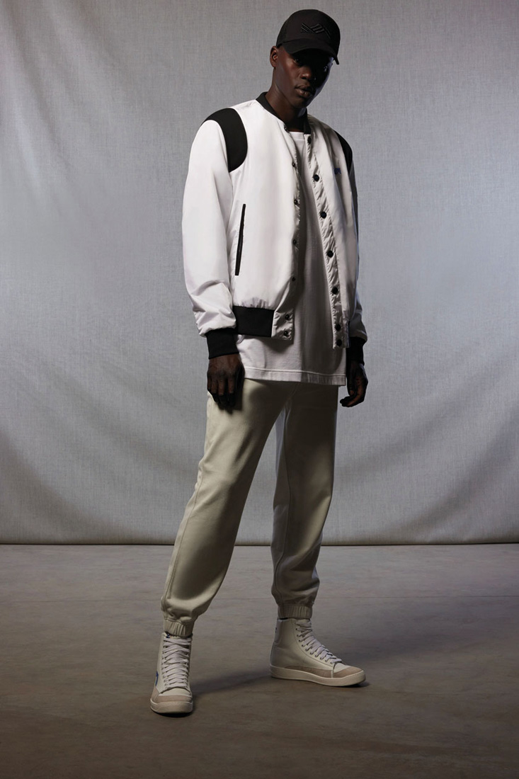 L’attenzione è indirizzata verso due completi esclusivi e nuovi: il blazer dove il collo è costruito con il dettaglio in maglia del bomber da volo MA-1 e la caratteristica felpa con cappuccio che è arricchita da dettagli sartoriali.