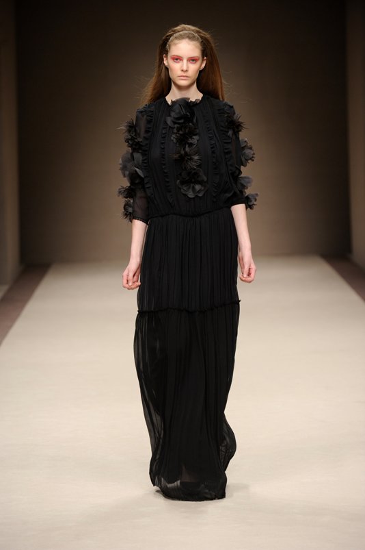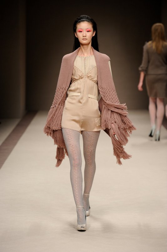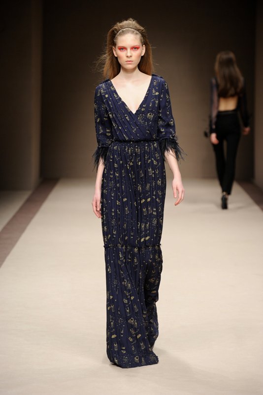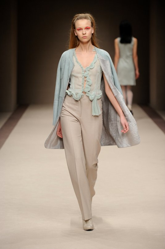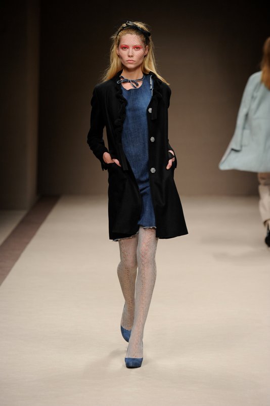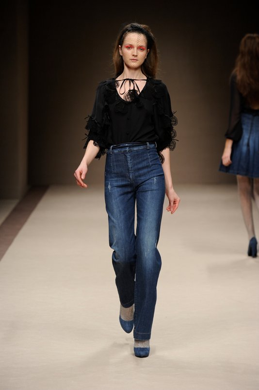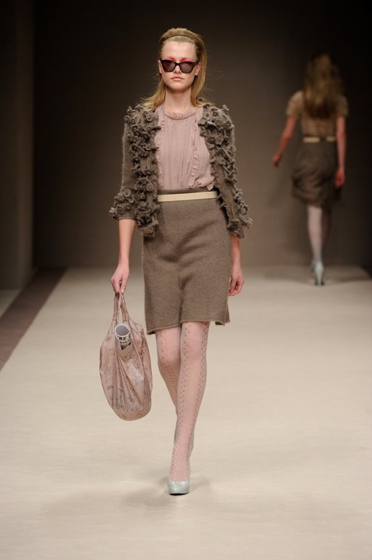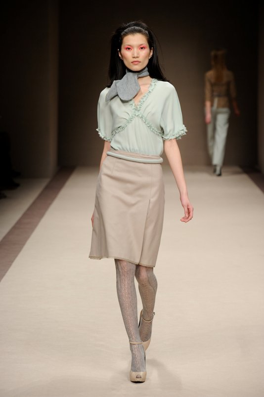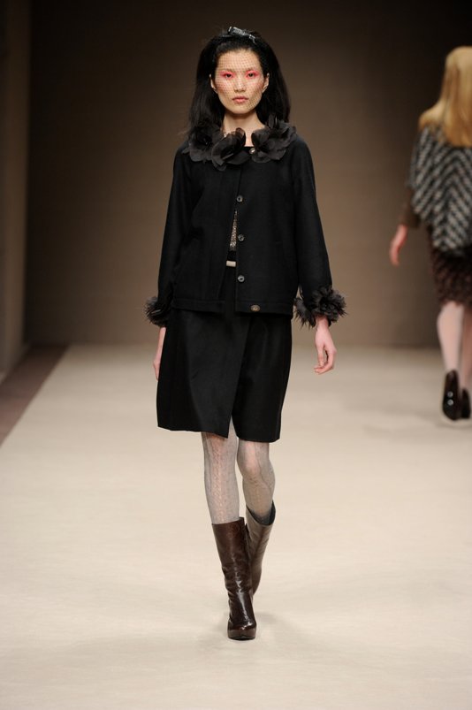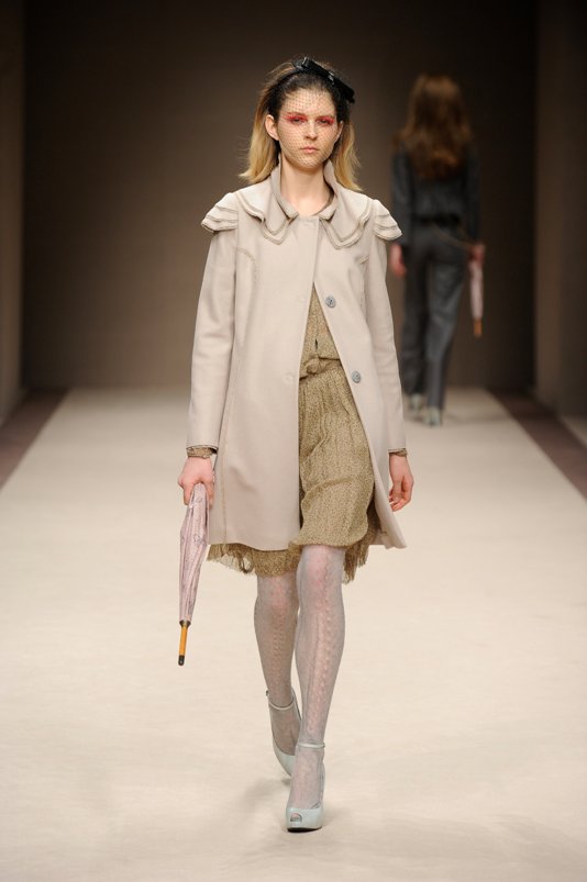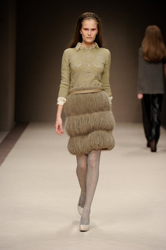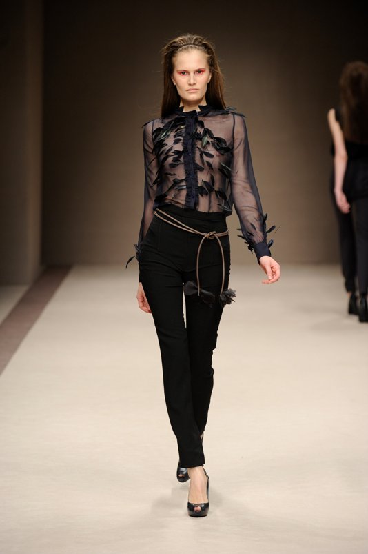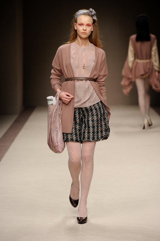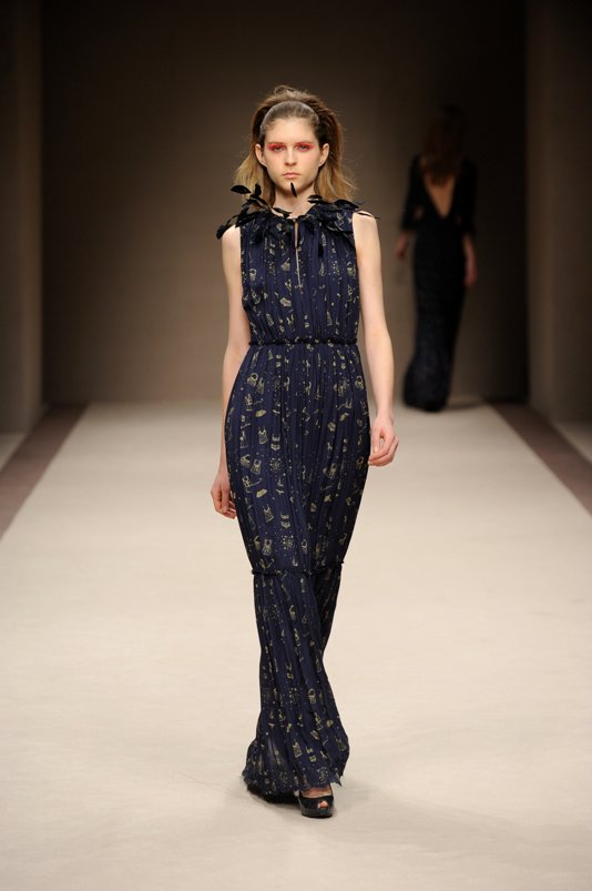 Cristina Tardito, in arte Kristina Ti, per la sua nuova collezione autunno/inverno 2011-2012, ha presentato sulla passerella del Museo della Permanente, la “signorina snob” reinventata in chiave moderna con lo stile autoironico e la leggerezza lieve e spiritosa di Franca Valeri. È Franca Valeri la signorina snob per eccellenza di tutti i tempi con quell’autentico spirito milanese e borghese che le appartiene da sempre e che ispira la designer torinese per la prossima stagione. Il mondo della Tardito è leggero ma non superficiale per una moda minimal ma sempre molto chic. Il suo stile prettamente femminile, è seducente, mai volgare ed è sicuramente il risultato di un ampio studio sull’intimo. La ricerca di questo modo d’essere femminile sobrio ma chic è reinventato nella nuova collezione con un’eleganza che ci riporta agli anni del boom economico quando le giovanissime esprimevano se stesse liberamente facendo scalpore. Grigio rosa beige e azzurro sono i colori scelti dalla stilista, la “testolina della donna buffa e snob” della Tardito è in perfetta sintonia con una Milano raffinata ma uggiosa; gli accessori pertanto diventano ombrelli, cappelli con velette nere a coprire il volto e giornali accartocciati in borsa. Le gonne in lanetta sono leggere e si fermano al ginocchio; qualcuna si apre a portafoglio, in altre i tagli creano spacchi profondi che lasciano più spazio al dettaglio della calza in pizzo di lana. Le camicette in seta sono leggere e trasparenti con applicazioni di cuori o rouge e stampe in madras che si ripetono, qualche volta, anche nelle scarpe. Il tailleur è in maglia con fiori applicati ed è simile la proposta per l’abito da sera, rigorosamente nero o con stampe in madras. Negli ultimi outfit la stilista propone qualche capo in jeans indumento per eccellenza degli anni della ripresa economica reinventati e resi più chic dalla vita alta per la gonna e per il pantalone e dallo scollo a barca per la casacca.