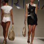 Il lungo convive con il cortissimo. Orli cortissimi nei minishorts che trasformano la donna guerriera di Krizia, rendendola maliziosamente femminile e che si intravedono solo all’aprirsi dell’abito lungo in seta nero con profili bianchi. Cortissimi da portare la sera con un top in pailletes coloratissime; preziosi nella tutina smilza, scollatura profonda, ridotta da una alta cintura con un grande cuore. Shorts da portare con t-shirt a stampa pantera nera su fondo bianco.