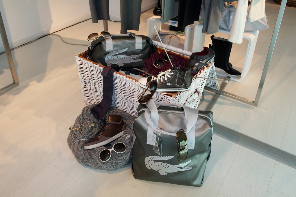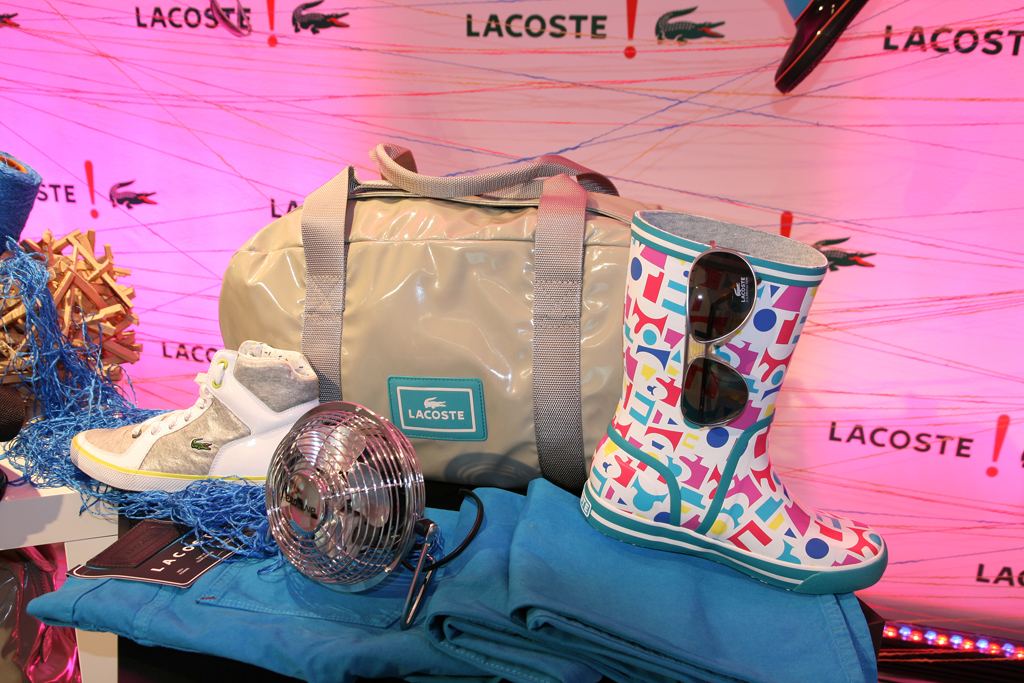 La linea Red, dedicata al pubblico giovane, punta invece all’impatto, proprio a partire dallo stesso logo che affianca al tradizionale coccodrillo un punto esclamativo rosso: a confermare l’intenzione di porre un forte accento sono i colori, in una palette accesa di turchesi, fuxia e gialli acidi, richiamati negli accessori dalle sneakers in tinta ai borsoni.