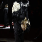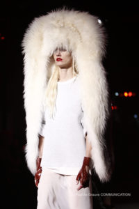 Infine, a garantire l’effetto scenico, colbacchi di pelliccia dalle dimensioni estreme che azzardano calde costruzioni sulle teste delle modelle.
