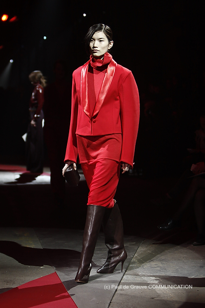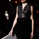 E poi ancora t-shirt in lattice, giacchette dai tagli maschili, completi tailleur. Bandite le mini, le gonne sono lunghe a tubino, portate con stivali in pelle alti al ginocchio; chiffon, tessuti lucidi, e altri ricavati dal guardaroba maschile, tanta pelle e poi il grande ritorno del velluto.