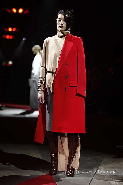 Non mancano alcuni capi classici, quasi fuori le riga rispetto agli altri outfit, come il cappotto rosso in lana, o i semplici dolcevita nelle nuance in grigio o beige che vengono subito reinterpretati se abbinati alle forme insolite dei pantaloni.