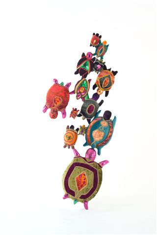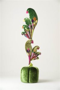 Da anni Carla Tolomeo porta avanti un suo personalissimo itinerario artistico che, pur spaziando in vari ambiti, dall’iniziale vocazione metafisica si dirige puramente verso la sperimentazione “giocosa” di forme e materiali, aspirando a trasformare certi oggetti quotidiani in opere d’arte sì fastose e raffinate, ma fruibili, che sembrano arrivate come un grato dono da un Eden felice, popolato di fiori, frutti, foglie, animali arcobaleno, solo per recare agli uomini allegria e felicità.