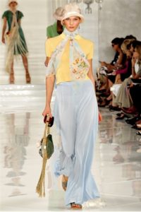 Le stesse ragioni di speranza e fiducia in quegli ideali vorremmo recuperarli anche noi oggi (allorché più che mai mala tempora currunt) e chissà se basterà una moda all’insegna degli Anni’20 a farsene ambasciatrice. Comunque, la prossima primavera vedrà il revival di abiti e accessori degni di dive alla Louise Brooks, destinati a diventare feticci anche ai nostri giorni. Ad esempio Francisco Costa, direttore creativo di Calvin Klein, ha proposto abiti retrò di seta a svasatura morbida, lunghezza a metà polpaccio, scarpe con cinturino alla caviglia, mentre Frida Giannini per Gucci ha pensato ad una moda un po’ architettonica, scolli a V, preziosi ricami dorati cuciti sulla seta, scarpe con i lacci, cappellini a campana; e Ralph Lauren sembra aver attinto a piene mani al guardaroba della Daisy del Grande Gatsby, con mises in lungo, tulle arricchito di perline d’argento, piume all’altezza delle gambe, boa di struzzo, calzature stilizzate lavorate all’uncinetto.