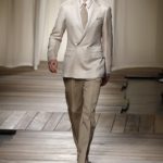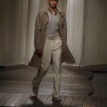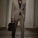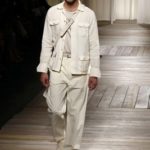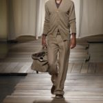 Si ispira alla brezza calda, ad un sottofondo di un mare nono lontano, alla sensazione di essere altrove, magari ai tropici e così con il consueto rigore della maison i capi si tingono di tonalità soffuse quelle dei colori naturali dell’ avorio, malva, uva, sabbia, salvia, pietra. Le linee sono morbide anche nei completi più formali come giacche e doppiopetto accostate a pantaloni con le medesime caratteristiche. Le altre giacche sono prevalentemente brevi e senza “fronzoli” e i pantaloni dalla linea stretta più sportiva e disinvolta. Un approccio rilassato anche negli spolverini o nei soffici blouson in nappa lavata. In questa collezione Gildo Zegna ci propone inconsuete intrerpretazioni del cardigan, spesso declinato oversize, che diventa un reale capospalla in quanto sostenuto da inserti di camoscio tagliati al vivo.