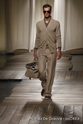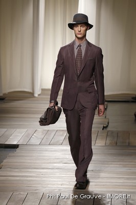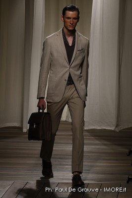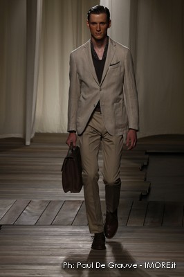 Prendendo quel file-rouge che ha segnato la manifestazione Pitti Uomo di quest’anno, alla quale non partecipa più dal 2008, Ermenegildo Zegna ci propone un uomo con un approccio “soft” e “décontracté”. Una collezione molto valida e di gran gusto, fatta di una elegante adattabilità che attraversa tessuti, e tagli sia nella collezione sartoriale che nel casual-chic.