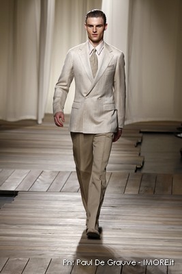 Era annunciato già dalla scorsa collezione invernale il nuovo “cool effect” di casa Zegna , che pervade la sartorialità sapiente e sottile dei tagli e dei tessuti, capaci di riflettere i raggi del sole e di adeguarsi al corpo sottolineandone i movimenti. Questa collezione uomo per l’estate 2010 ci propone capi con confidenza al viaggio, che non temono di essere maltrattati grazie alla loro aria vissuta, dedicati ad un uomo che si mostra con naturalezza, poco interessato al superfluo, guidato dall’istinto verso quello che realmente fa per lui, che gli assomiglia.