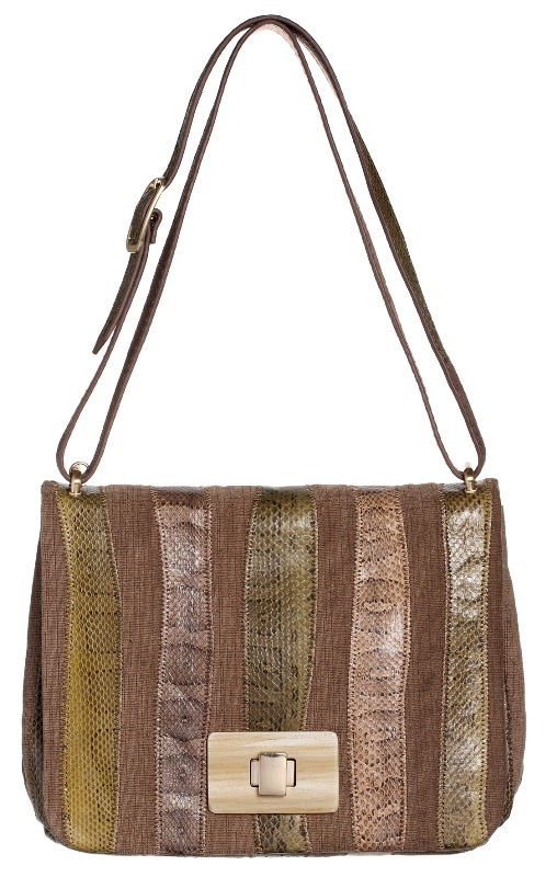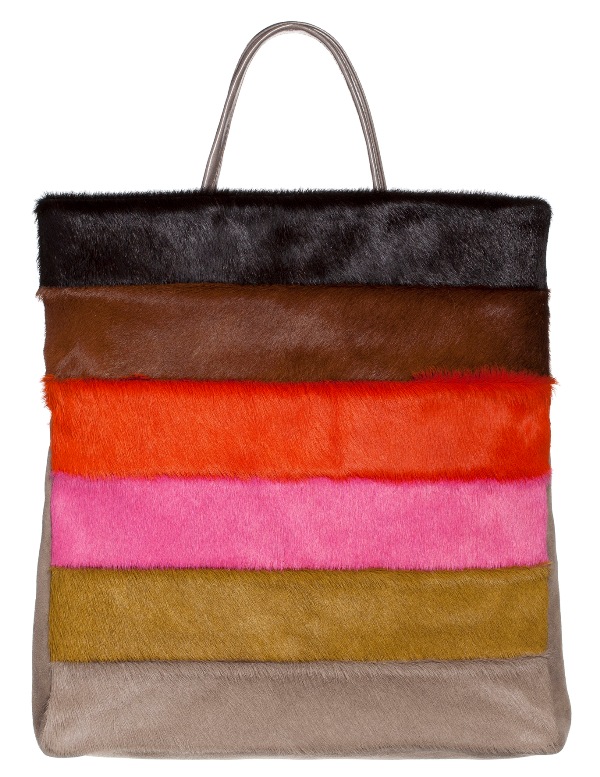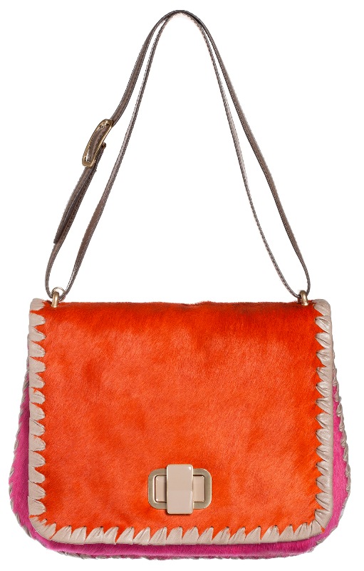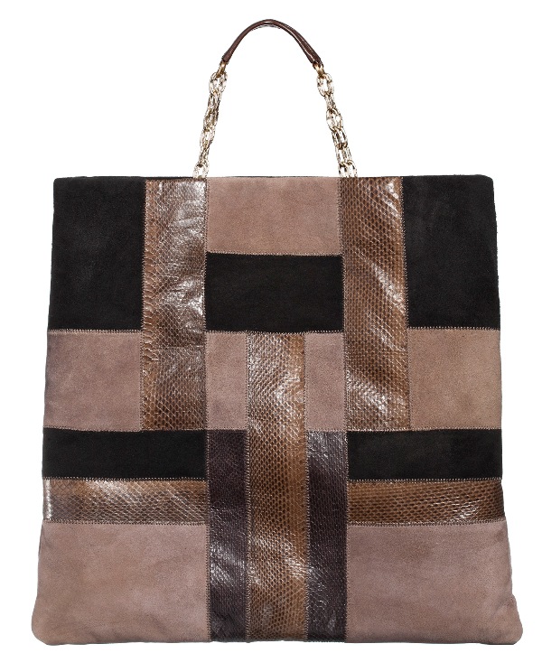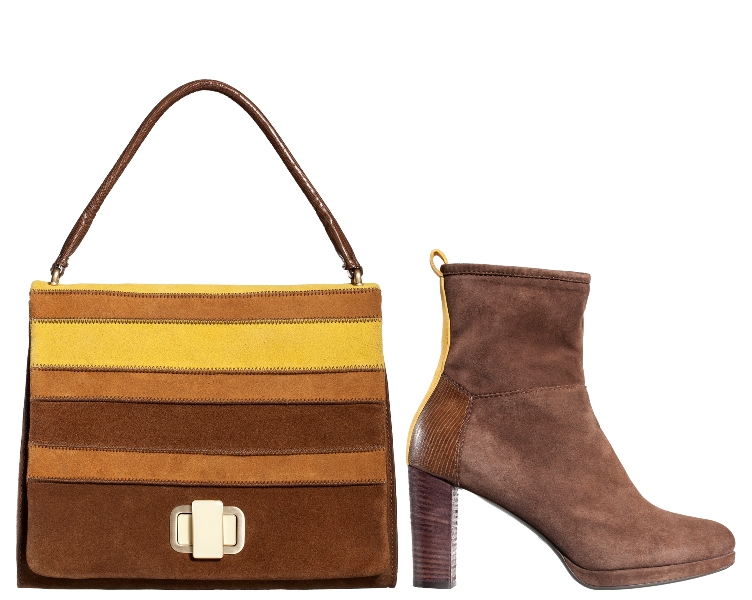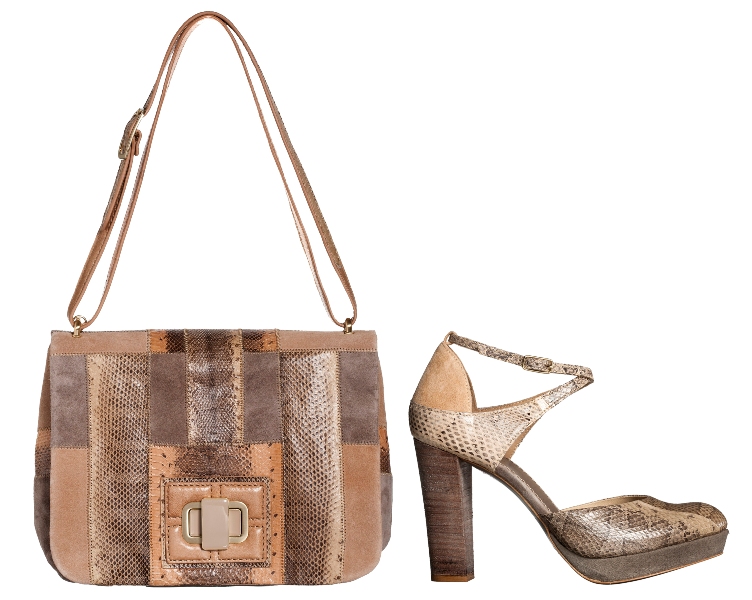 Per gli accessori Maliparmi propone shopping bag e borse a spalla in cui stupisce il patchwork in vari materiali combinati armoniosamente: whips e suede, cocco e pelle craquelé, cavallino e suede, whips e velluto. Il colore è ancora una volta il protagonista: fuxia, arancio, senape, verde e caldissimi marroni. Anche le scarpe – il tronchetto, e la Kate incrociata e ricamata – conservano richiami patchwork.