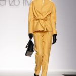 I tailleur dalle linee geometriche vengono proposti in tweed in molte tonalità dal giallo pannocchia, al verde pavone, ruggine e azzurro.