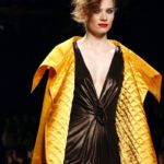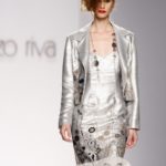 L’aria si fa più seria con le giacche a collo alto o i lucidi revers, decisamente luminosa con gli abiti d’argento e metallici.