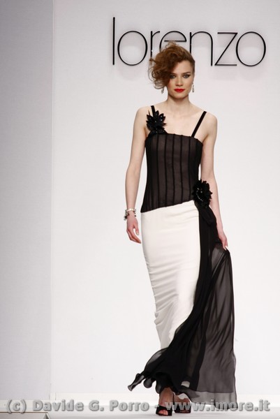 Per la sera lo stilista monzese propone preziosi abiti in nero, argento ma anche in fantasia. Le linee sono perlopiù pulite . Qualche abito tutù in tulle nero.