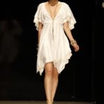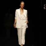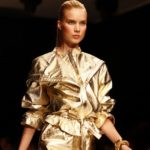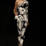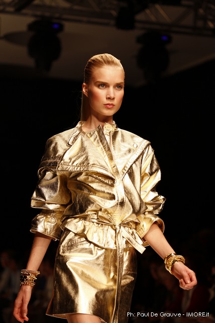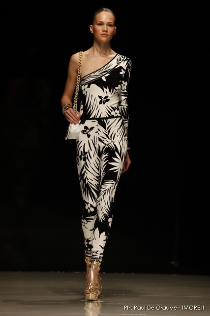 Chiudono la collezione due micro abitini aderenti in tinte optical geometriche bianche e oro, che poco lasciano all’immaginazione visto l’effetto seminudo, proprio per rimarcare ancora sul finire della sfilata l’esagerata esaltazione del corpo femminile, mostrato a tutti i costi.