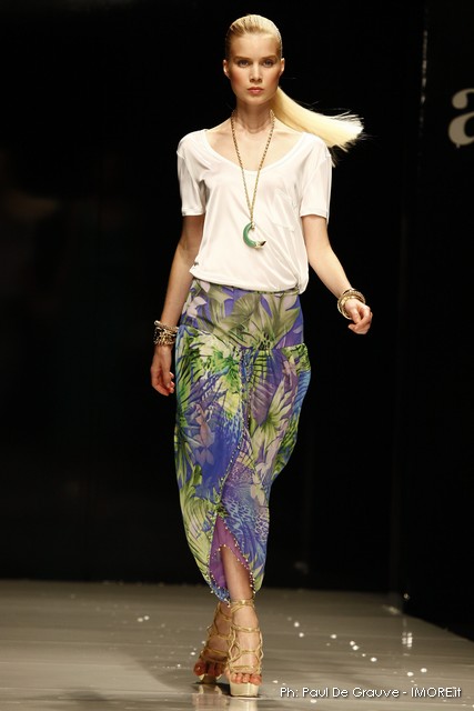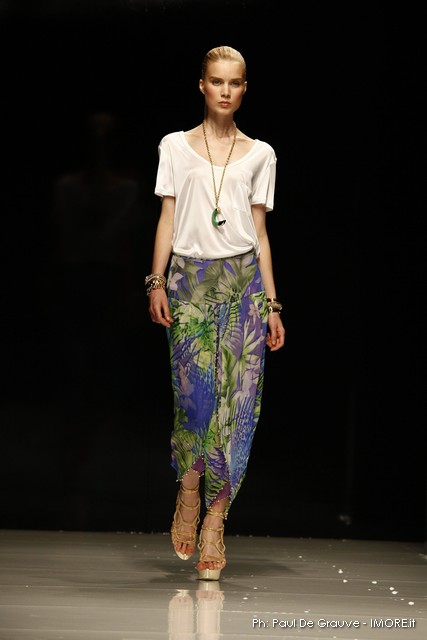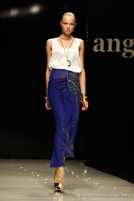 “Sexy e glamour” è la definizione che Angelo Marani dà alla donna da lui vestita per la prossima primavera-estate 2010 . Sexy sicuramente, forse troppo, visto che gli abiti sembrano scelti solo per esaltare i sensi e valorizzare l’aspetto fisico con gonne vestiti o shorts davvero corti o alle volte semi trasparenti.