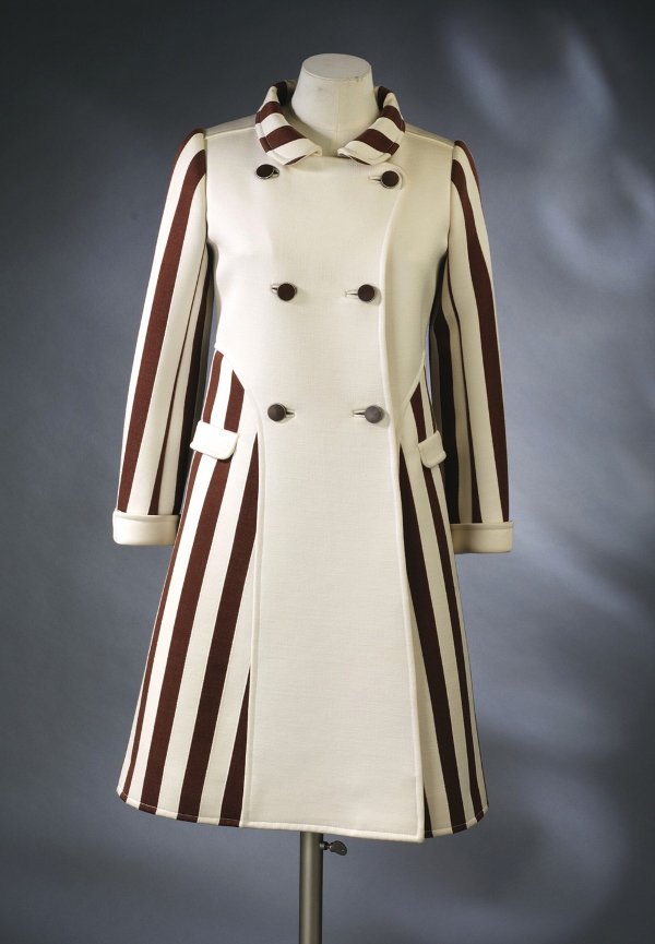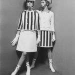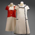 Courrèges è ricordato soprattutto per l’invenzione degli abiti a trapezio in vinile e nuovi materiali, della minigonna ante-Quant, degli stivali bianchi senza tacco, degli occhiali da sole sempre nivei solcati da una fessura.