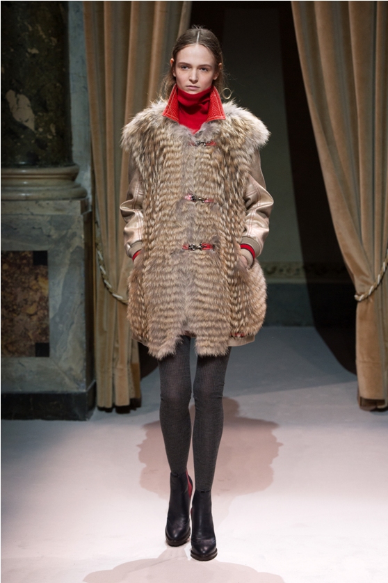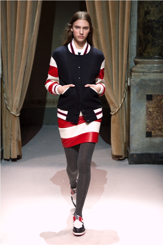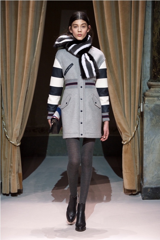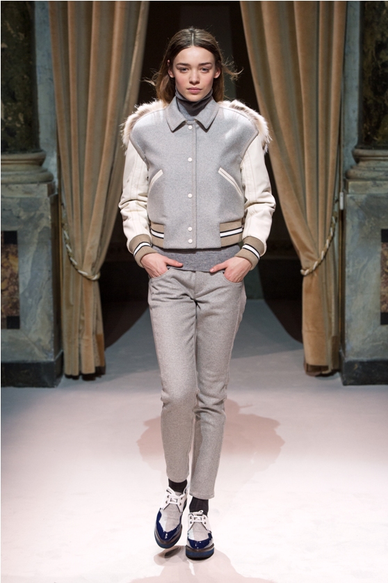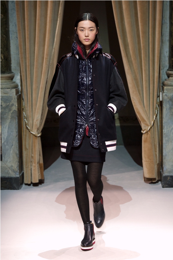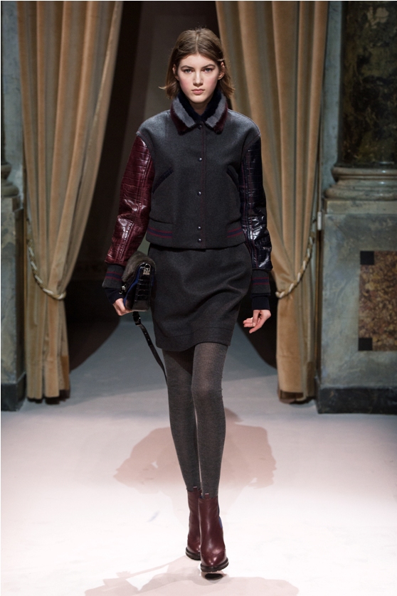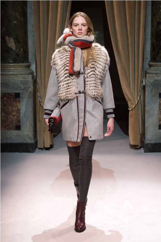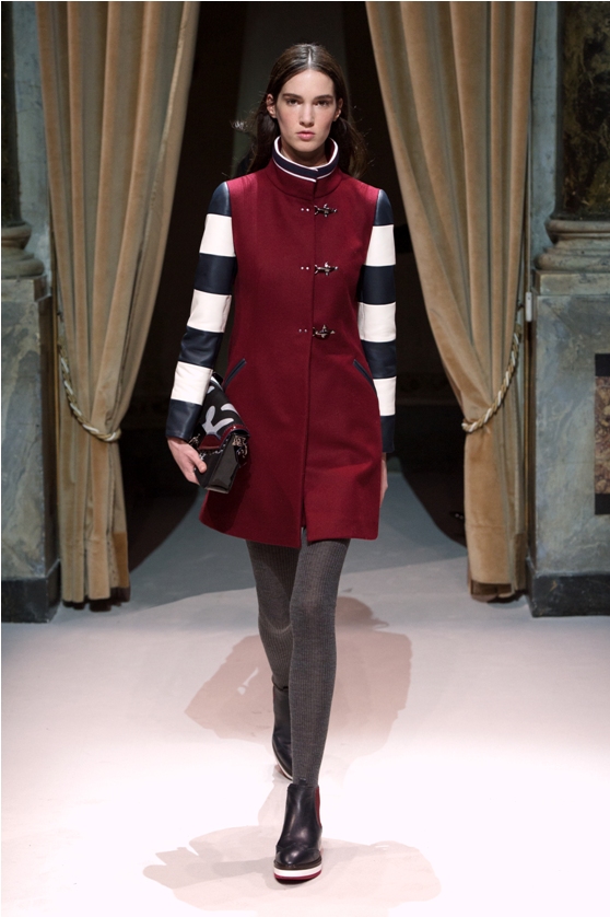 Una collezione dalla grinta forte, con alcuni capi chiaramente ispirati al mondo maschile, anche se gli stilisti ingentiliscono al femminile le connotazioni più decise come la varsity racket, la giacca da studente universitario, con maniche in contrasto e toppe applicate, capo noto appunto nei campus universitari americani. La forma over delle spalle imbottite ed arrotondate richiama senza ombra di dubbio la divisa dei giocatori di football; il classico parka con i ganci, capo iconico di Fay profilato in rosso, che diventa voluminoso per il pelo lungo, anche solo nelle maniche, fa pensare alle cheerleaders, le ragazze pon pon, che incitano il tifo a bordo campo. E’ proprio questa ispirazione al mondo più decisamente da campi sportivi maschili, quella che ci determina a connotare una buona parte della collezione per un target indiscutibilmente universitario e per un mercato decisamente di oltreoceano.