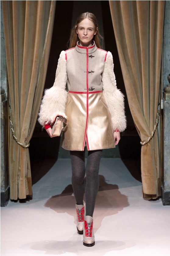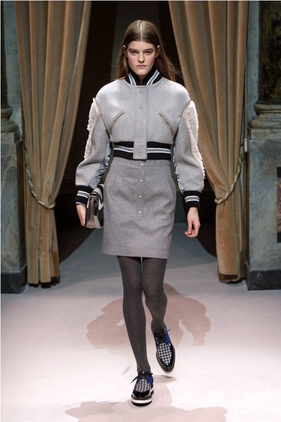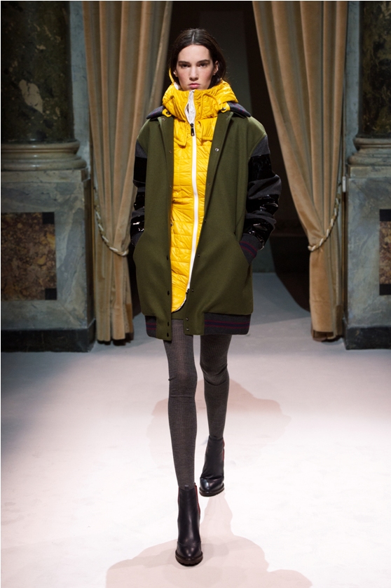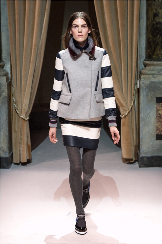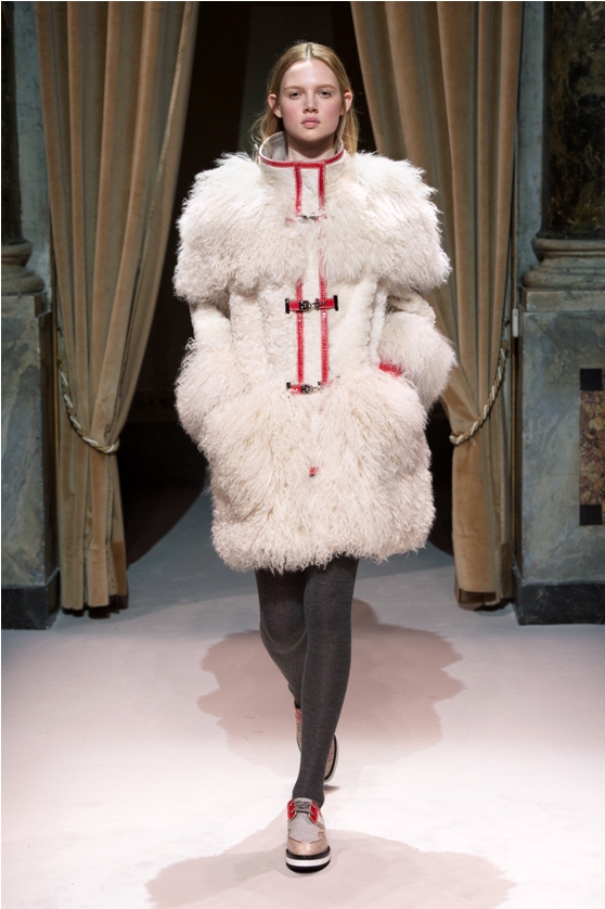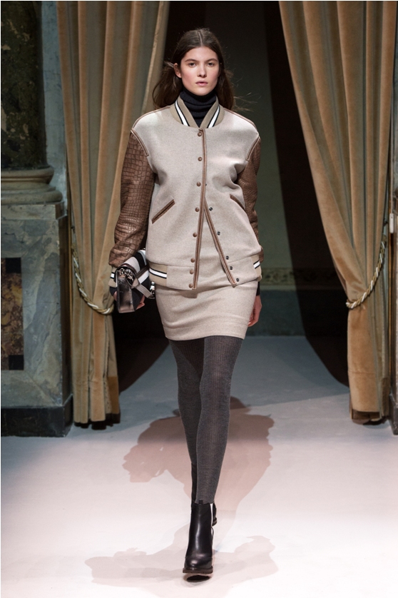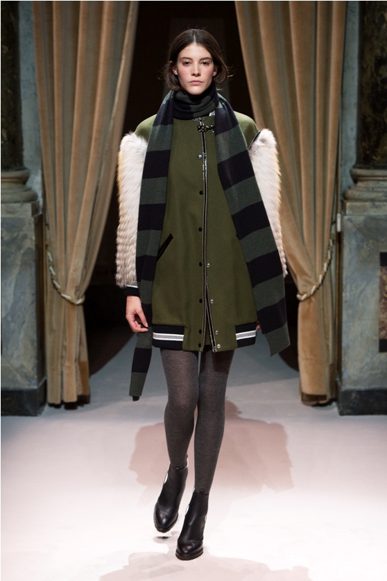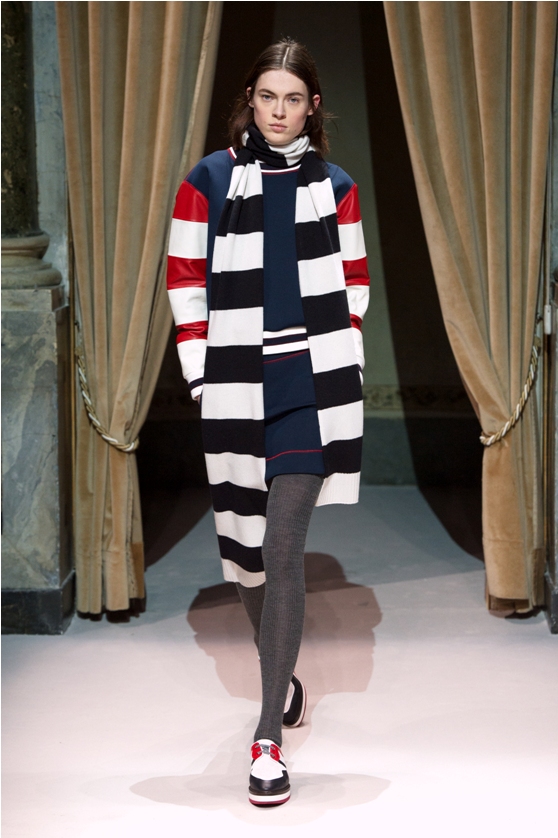 Una collezione dalla grinta forte, con alcuni capi chiaramente ispirati al mondo maschile, anche se gli stilisti ingentiliscono al femminile le connotazioni più decise come la varsity racket, la giacca da studente universitario, con maniche in contrasto e toppe applicate, capo noto appunto nei campus universitari americani. La forma over delle spalle imbottite ed arrotondate richiama senza ombra di dubbio la divisa dei giocatori di football; il classico parka con i ganci, capo iconico di Fay profilato in rosso, che diventa voluminoso per il pelo lungo, anche solo nelle maniche, fa pensare alle cheerleaders, le ragazze pon pon, che incitano il tifo a bordo campo. E’ proprio questa ispirazione al mondo più decisamente da campi sportivi maschili, quella che ci determina a connotare una buona parte della collezione per un target indiscutibilmente universitario e per un mercato decisamente di oltreoceano.