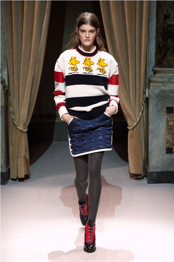La collezione Fay P/E 2014, propostoci a settembre 2013, dagli stilisti Aquilano e Rimondi nei toni di uno sportwear sofisticato, accattivante per le reminiscenze anni ’70 e per i colori; divertente per gli accenni ai personaggi dei cartoon come Snoopy o per le forme degli accessori -sneakers multicolor e borse a secchiello o bauletto in tessuto stampato o in vernice-, ci portava già ad immaginarla per un target molto giovane.